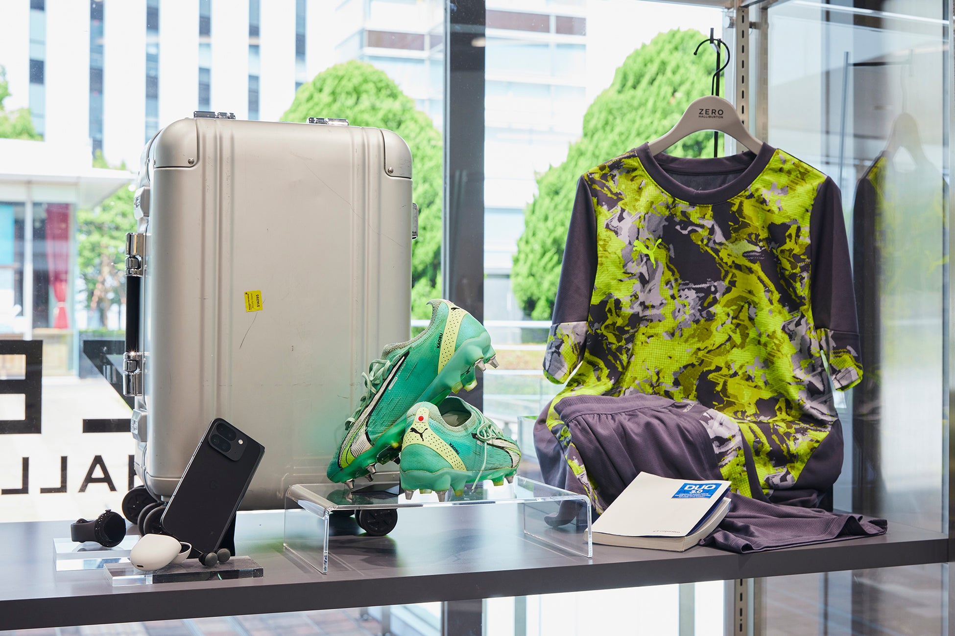さらにフォトスポットや、三笘薫選手の私物を展示する特別企画「Packed for Life ~三笘薫の旅じたく~」も店内にて開催。2022年 ~ 2023年シーズンで実際に着用した、日本国旗と名前が刻まれた特別仕様のスパイクシューズや、トレーニング時に着用していたウェア、実際の遠征などで使用していたゼロハリバートンのラゲージなど、普段は見ることのできない貴重な愛用品をご覧いただけます。