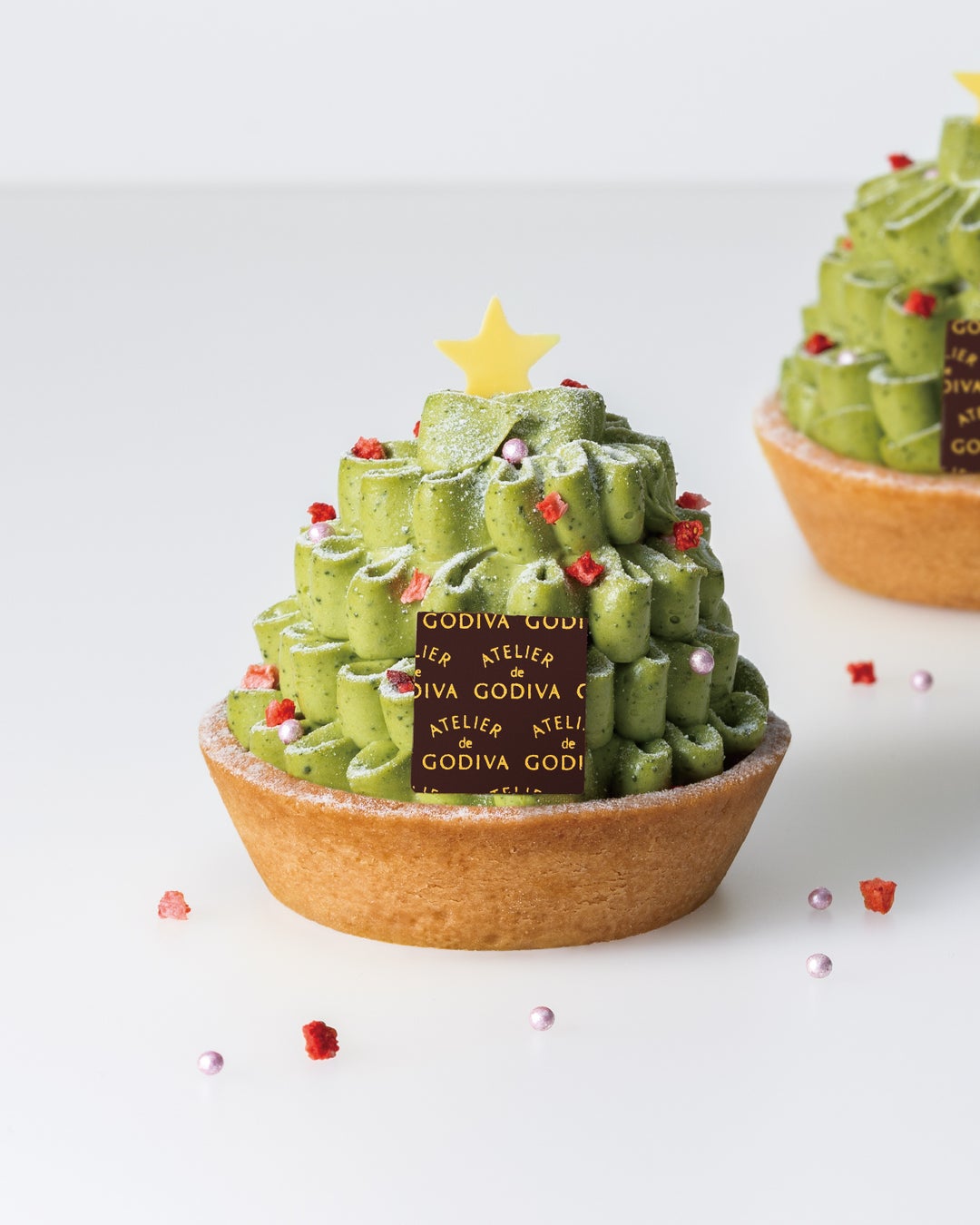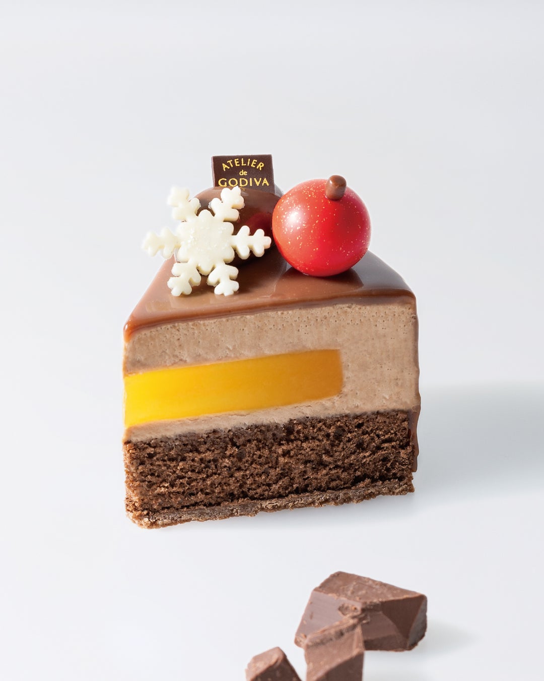 アトリエ ドゥ ゴディバでは、ホリデー & ニューイヤーに向けて、以下のスイーツを期間限定で販売します。