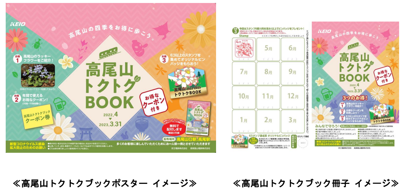 京王電鉄株式会社(本社:東京都多摩市、取締役社長:紅村 康)では、お客様に高尾山の四季折々の自然や登山を楽しんでもらうため、高尾山の様々な情報を掲載したクーポン券(10月~11月を除く)付きの冊子「高尾山トクトクブック」を4月1日(金)から高尾山口駅と高尾駅にて20,000部限定で配布します。