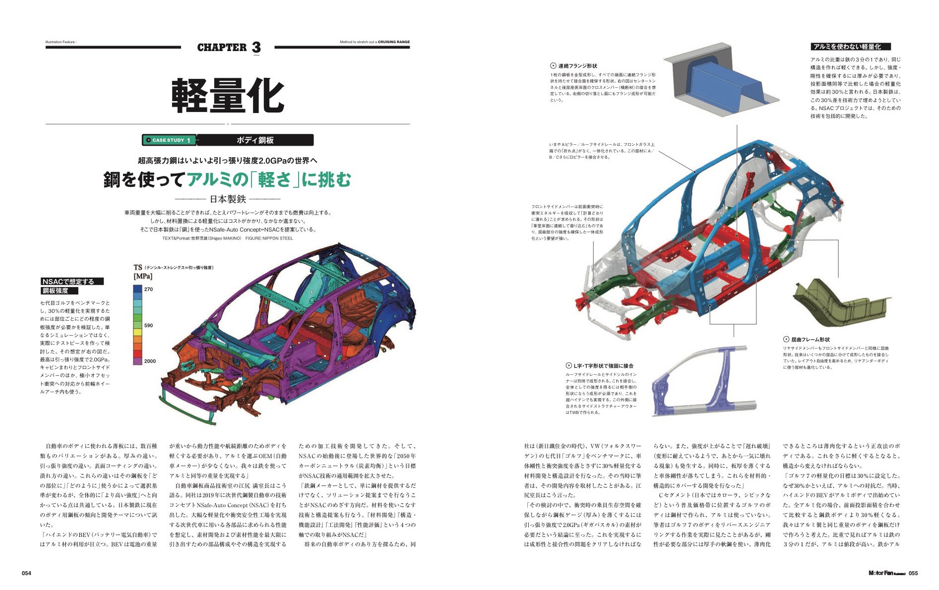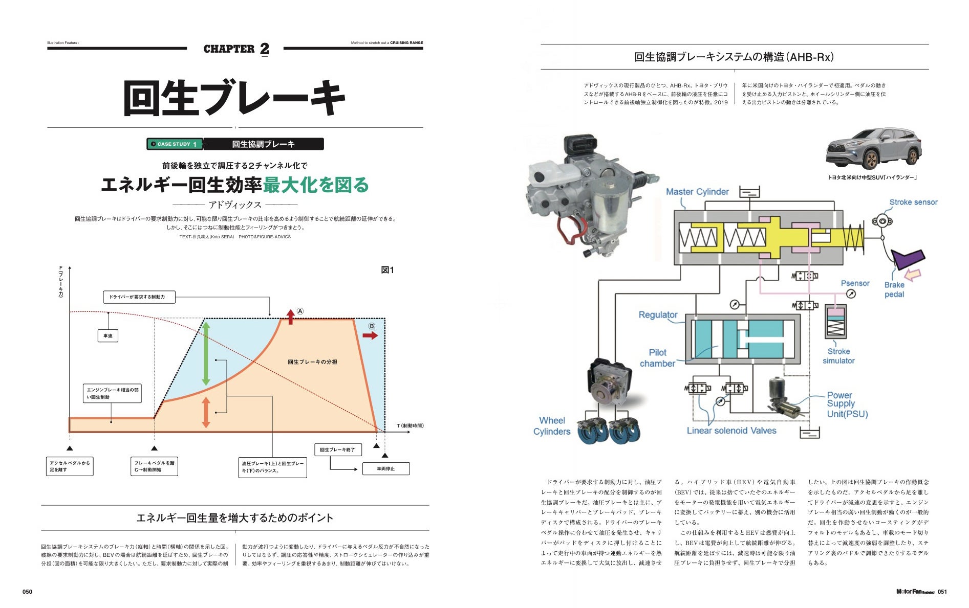 特集外では、マツダが発表したラージ商品群の詳細レポート、新連載のサスペンションウォッチング・TBA編、大好評連載の大学研究室探訪・愛知工業大学編、技術の出発点・回生協調ブレーキの歴史などを掲載しています。