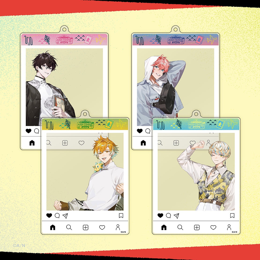 ラインナップは撮りおろしビジュアルを使用したランダム缶バッジ、ランダムチェキ風カード、アクリルスタンド、アクリルキーホルダー、パスケース、マルチポーチ&フライトチケット風ステッカーセットの計6種。