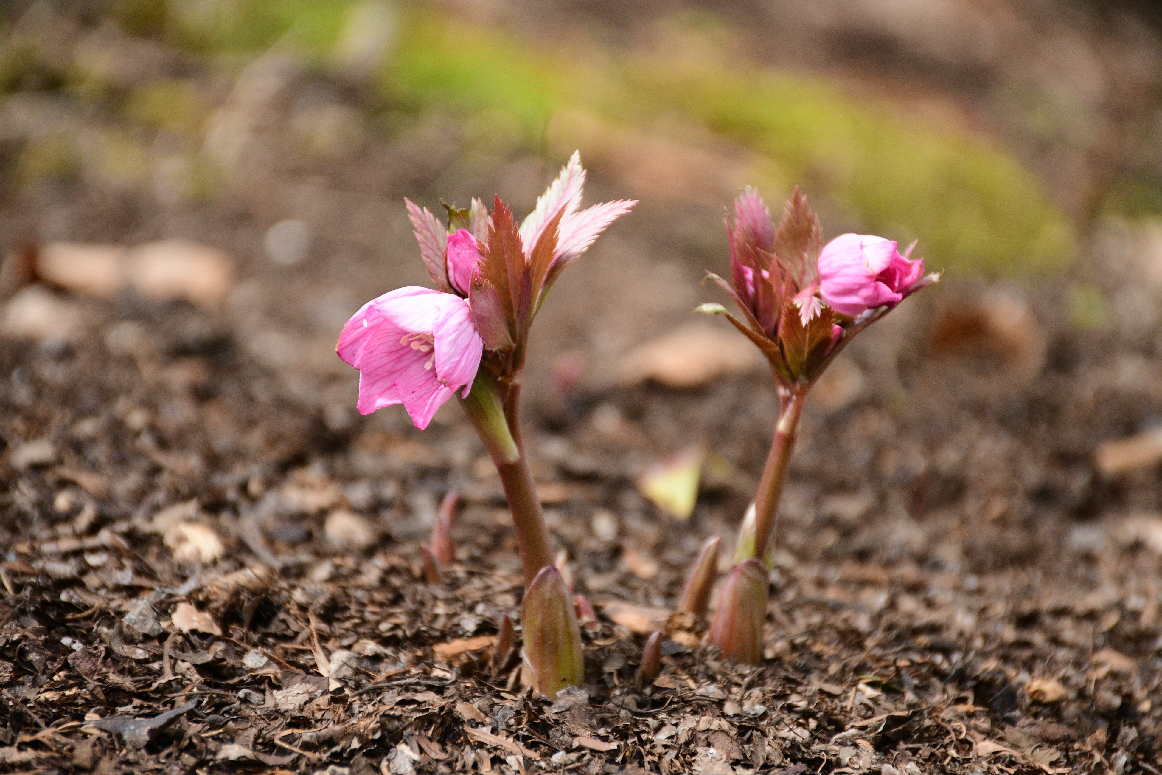 国営アルプスあづみの公園【大町・松川地区】のシェードガーデンで、原種クリスマスローズ「ヘレボルス・チベタヌス」が開花しました。淡いピンクの花弁に透けるような質感と、早春ならではの清楚な佇まいが魅力です。希少種ならではの凛とした存在感と、芽吹きとともに広がる柔らかな彩りをお楽しみいただけます。これから徐々に開花株が増え、見ごろは4月上旬の見込みです。