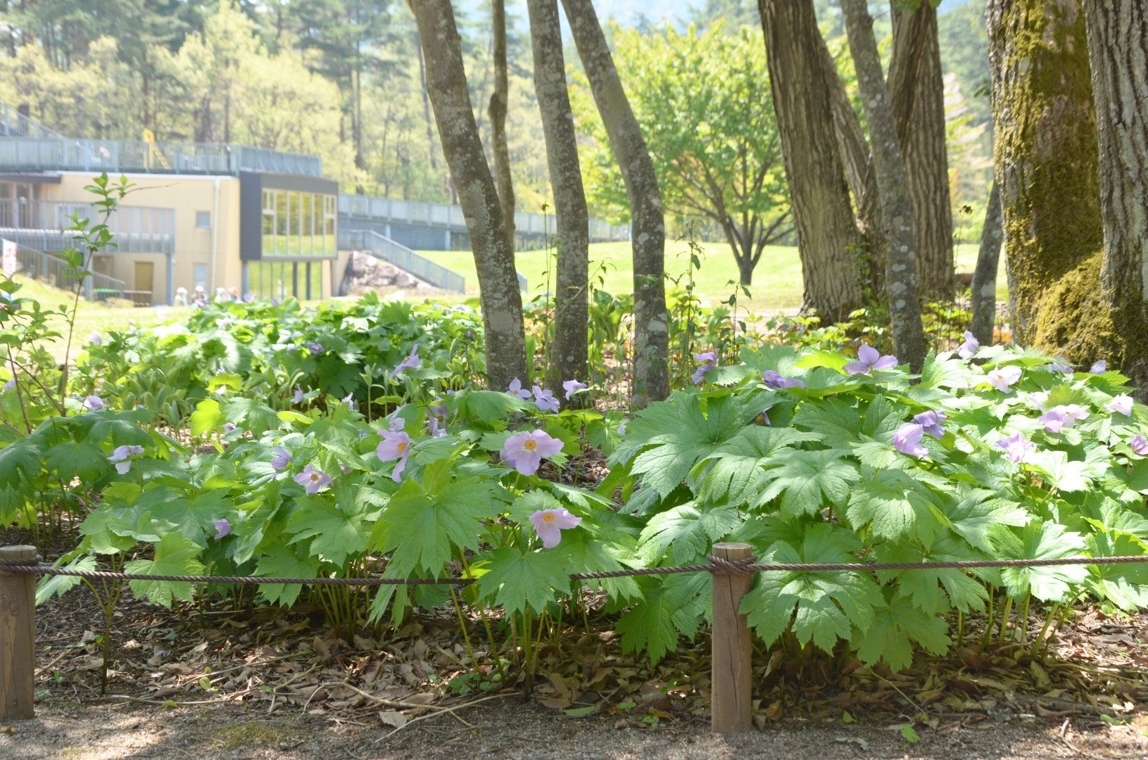 2019年の「都市緑化信州フェア」に合わせて整備したシェードガーデンは、園芸家・育種研究家の矢澤秀成氏が監修・設計しました。3月下旬には、ほかの植物に先駆けてヘレボルス・チベタヌス(Helleborus thibetanus)が可憐に開花。うつむき加減に咲く上品な姿で、来園者を魅了します。