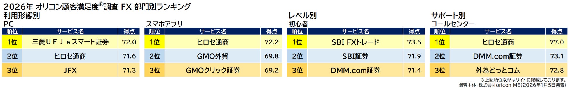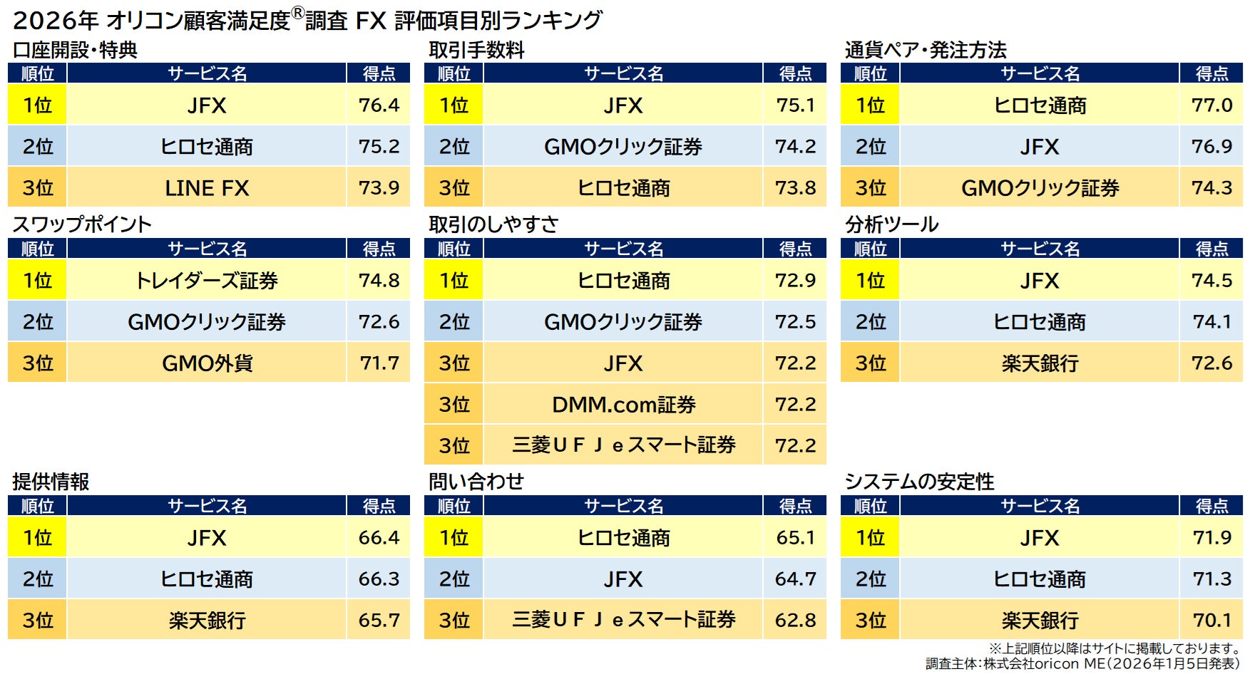 オリコン株式会社(本社:東京都港区 代表取締役社長:小池 恒、略称:オリコン)は、グループ会社である株式会社oricon MEが、実際のサービス利用者を対象に第三者の立場で実施した『FX』についての顧客満足度調査の結果を、2026年1月5日(月)14時に発表いたしました。