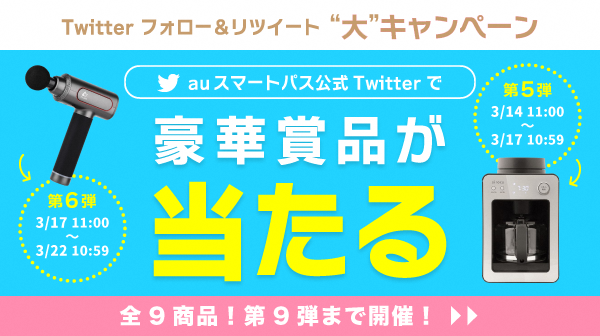 ・参加条件:auスマートパスのTwitterアカウント(@smartpass_au)をフォローしている方は、どなたでもご参加いただけます。