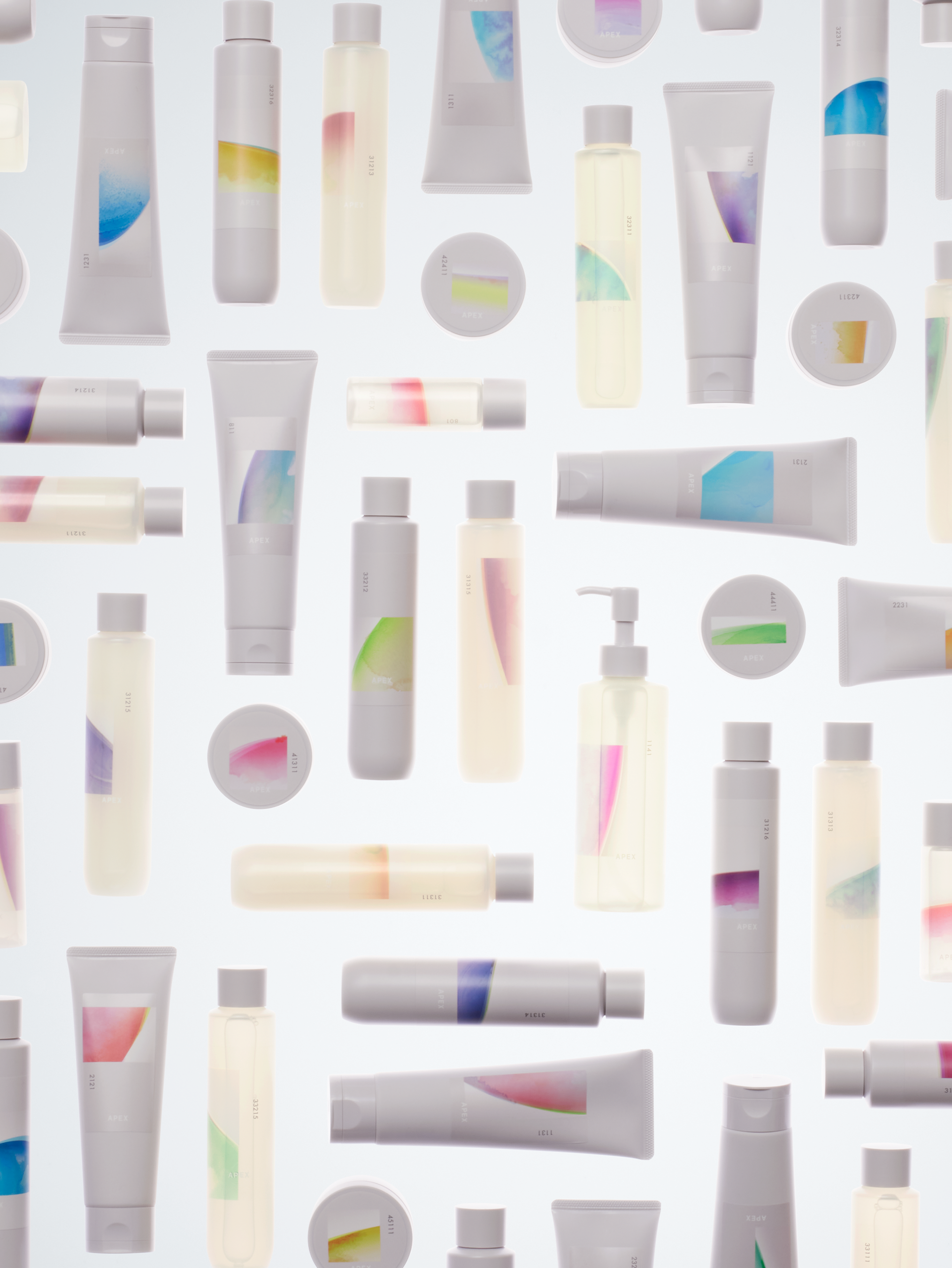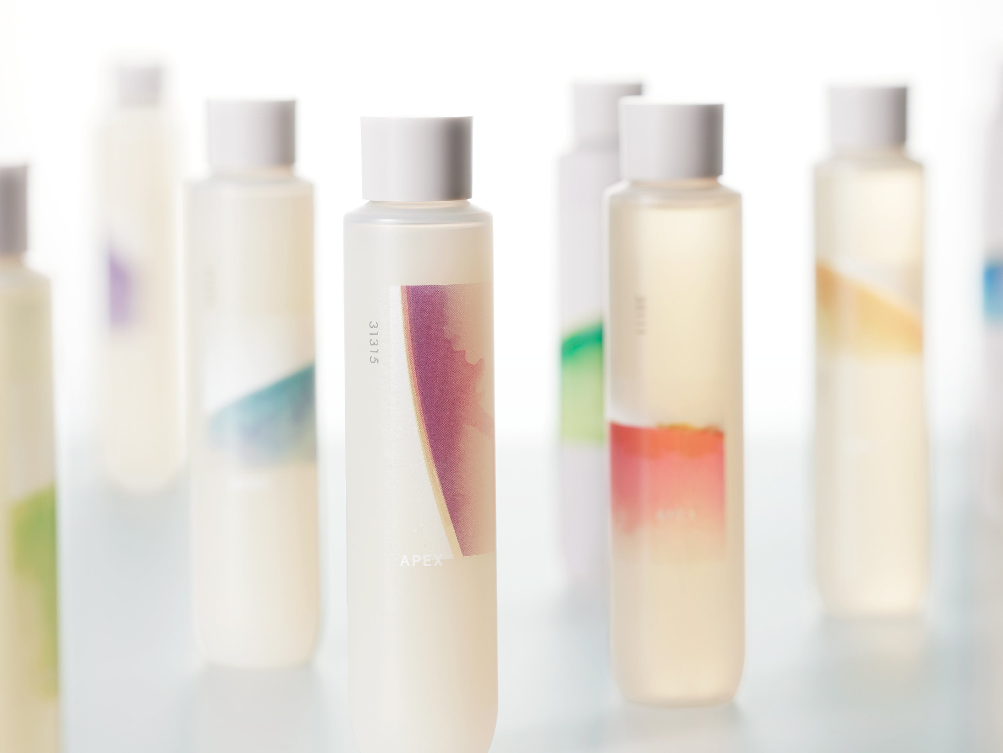 「APEX」は、肌分析に基づいて、一人ひとりの今の肌状態に合わせた成分・処方設計をセレクトして提案するブランドであり、146種類の異なるグラフィックデザインで展開しています。デザインコンセプトは、日本の禅語の思想「日日是好日(一日一日を大切に生きる心構え)」日々を大切に積み重ねていくことで、自分を信じられるようになり、新たな体験が広がっていく。そんな体験として、色が積み重なる積層をモチーフとしたグラフィックで表現。重ねた日々の先にある新たな変化の兆しを、細い挿し色で表現しました。アペックス フルイド<美容液・化粧水>ボトルは、試験管をモチーフとし、サイエンスの魅力を演出しています。キャップは取り出しやすさと握りやすさを考慮し、逆テーパーのキャップ形状に。全商品に環境対応素材を採用し、アペックス フルイド<美容液・化粧水>ボトルは形状ミニマム化・パーツ数削減によりプラスチック使用量を自社従来比16.1%削減しています。