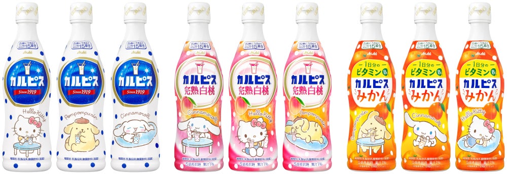 『カルピス』『カルピス 完熟白桃』『カルピス みかん』サンリオデザインラベル 1月16日発売