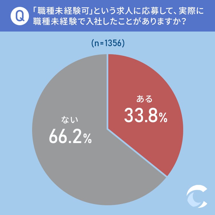 まず、転職の経験がある全国の男女1356人の方に、「職種未経験可」という求人に応募して、実際に職種未経験で入社したことがあるかについて聞きました。