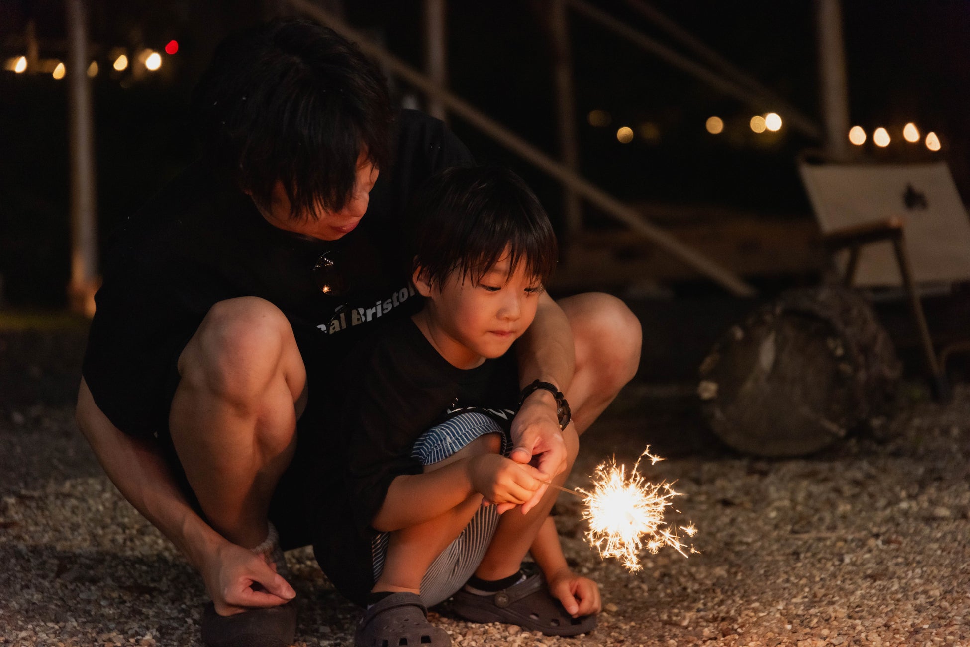 夜は焚火を囲んで焼きマシュマロや花火は最高の思い出になります。