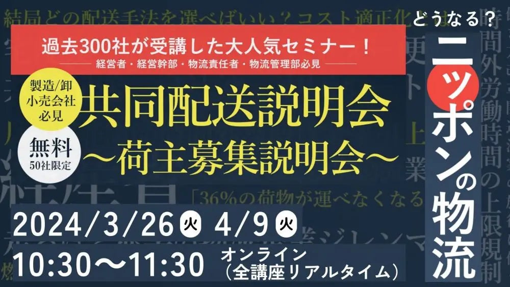 過去に300社以上が参加した大好評セミナー!「第1回 共同配送説明会」を 2024年3月26日(火)開催