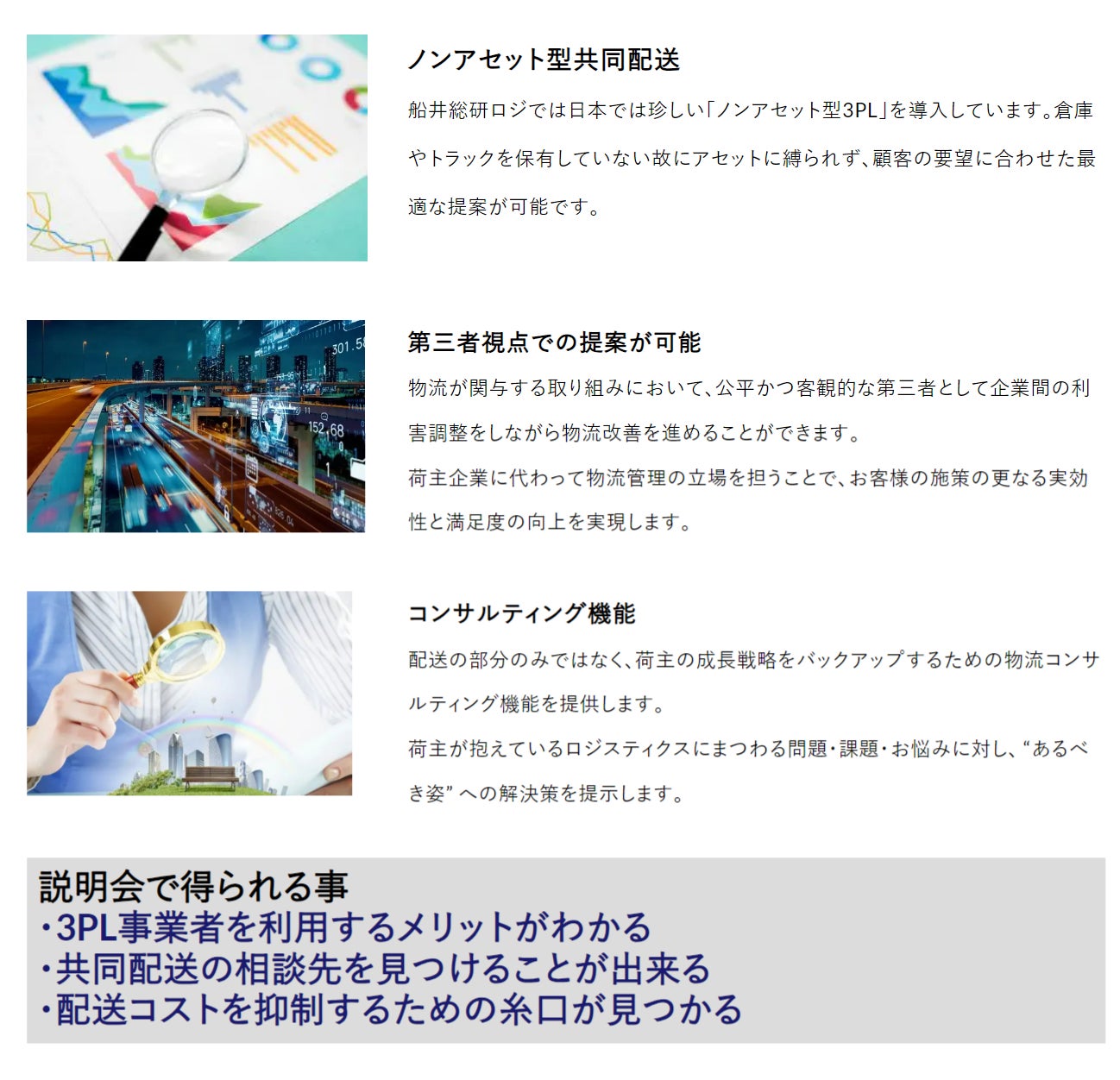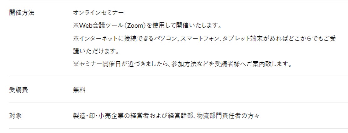 日本最大級のロジスティクス・物流コンサルティングファーム 船井総研ロジ株式会社(東京本社:東京都千代田区、代表:菅重宏、以下「船井総研ロジ」)は、2024年3月26日(火)10:30~11:30、製造・卸・小売企業の経営者および経営幹部、物流部門責任者の方々を対象にした「第1回 共同配送説明会」をオンラインで開催いたします。