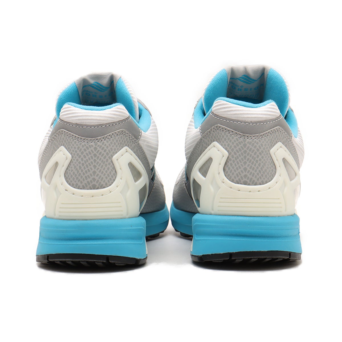 今回のatmosの別注シリーズ第9弾は、ZX8000のオリジナルカラーとして不動の地位を誇るホワイト&アクアをベースに、1991年に輩出されたメイドインフランスバージョンのカラーサンプリングを加えたマニア垂涎の配色でモディファイ。また、本作より”DESIGNED IN TOKYO”のピスタグがライナー部分に配されており、東京を拠点とするatmos別注であることの証明の役割を担っている。