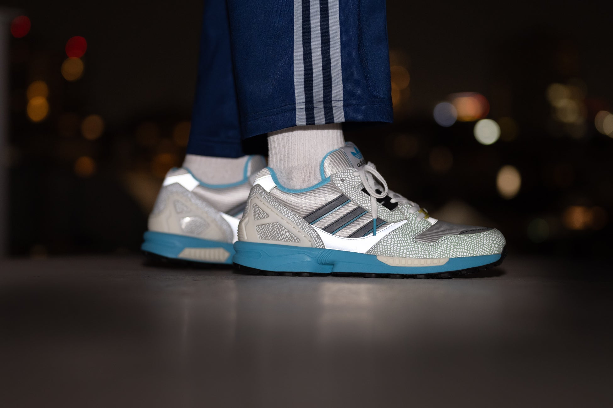 atmos別注はZX8000に通称”GID-SNK”と呼ばれるパターンを落とし込んでおり、”GLOW IN THE DARK”(蓄光)のパーツ上に、スネークスキン状のリフレクター素材を纏わせている。本シリーズは2011年から発売をスタートし、2020年からは毎年コンセプトやデザインを変えてリリースしており、知る人ぞ知る人気作として語り継がれている。