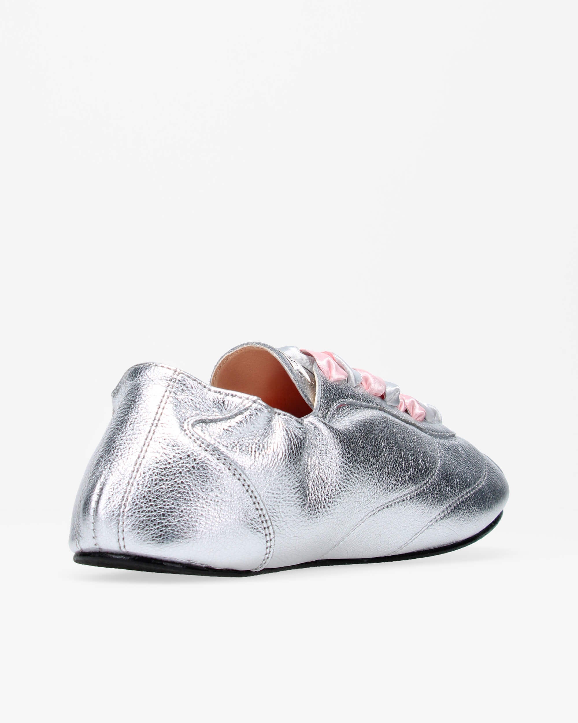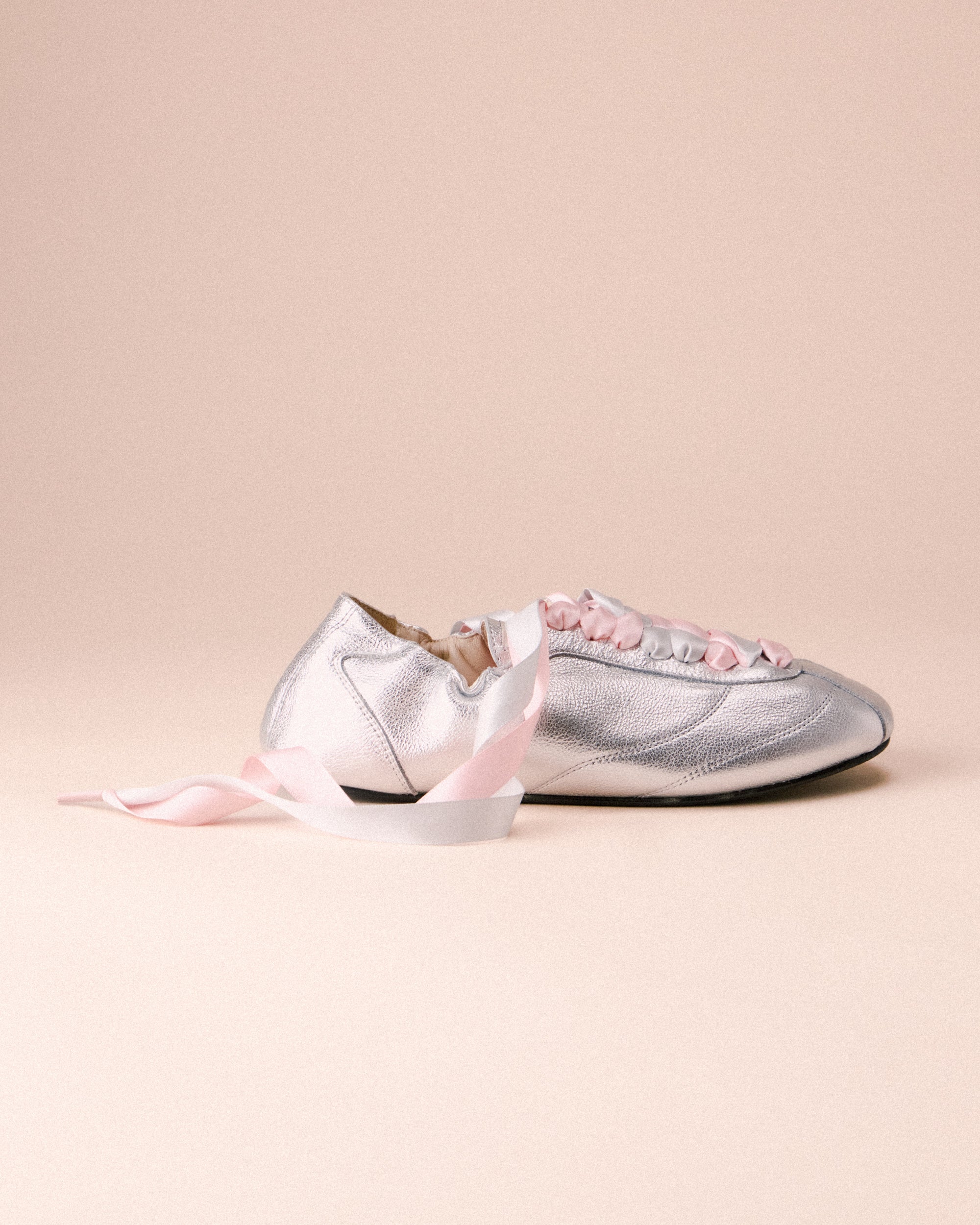 上品でモダンなダブルサテンのシューレースが、バレエシューズのリボンを連想させます。