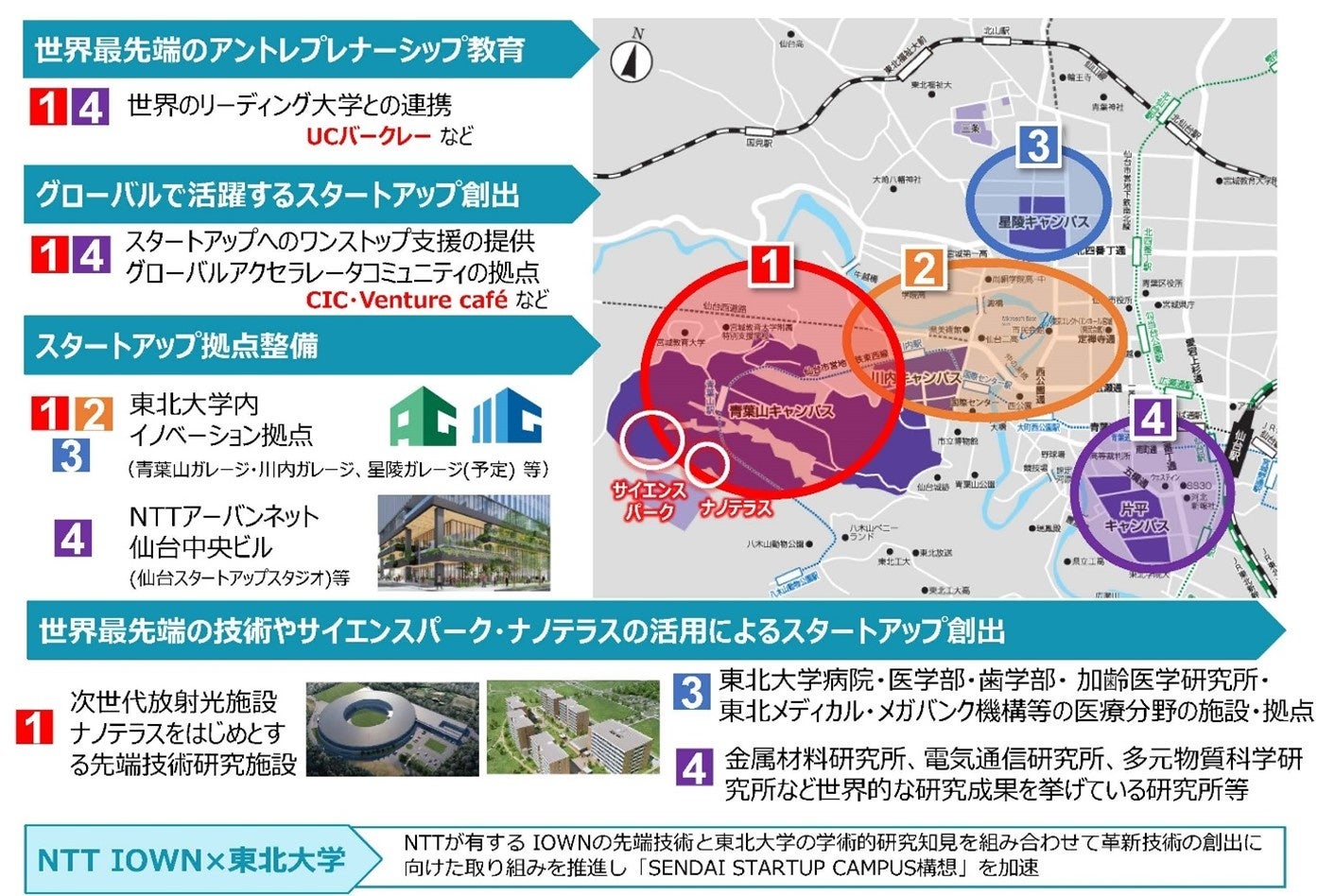 こうした中で、東北エリアにおいても、産学官協働による拠点づくりに関して海外の大学等とも連携し、仙台の街全体に国際的なスタートアップ・キャンパスを形成する構想が進められてきました。