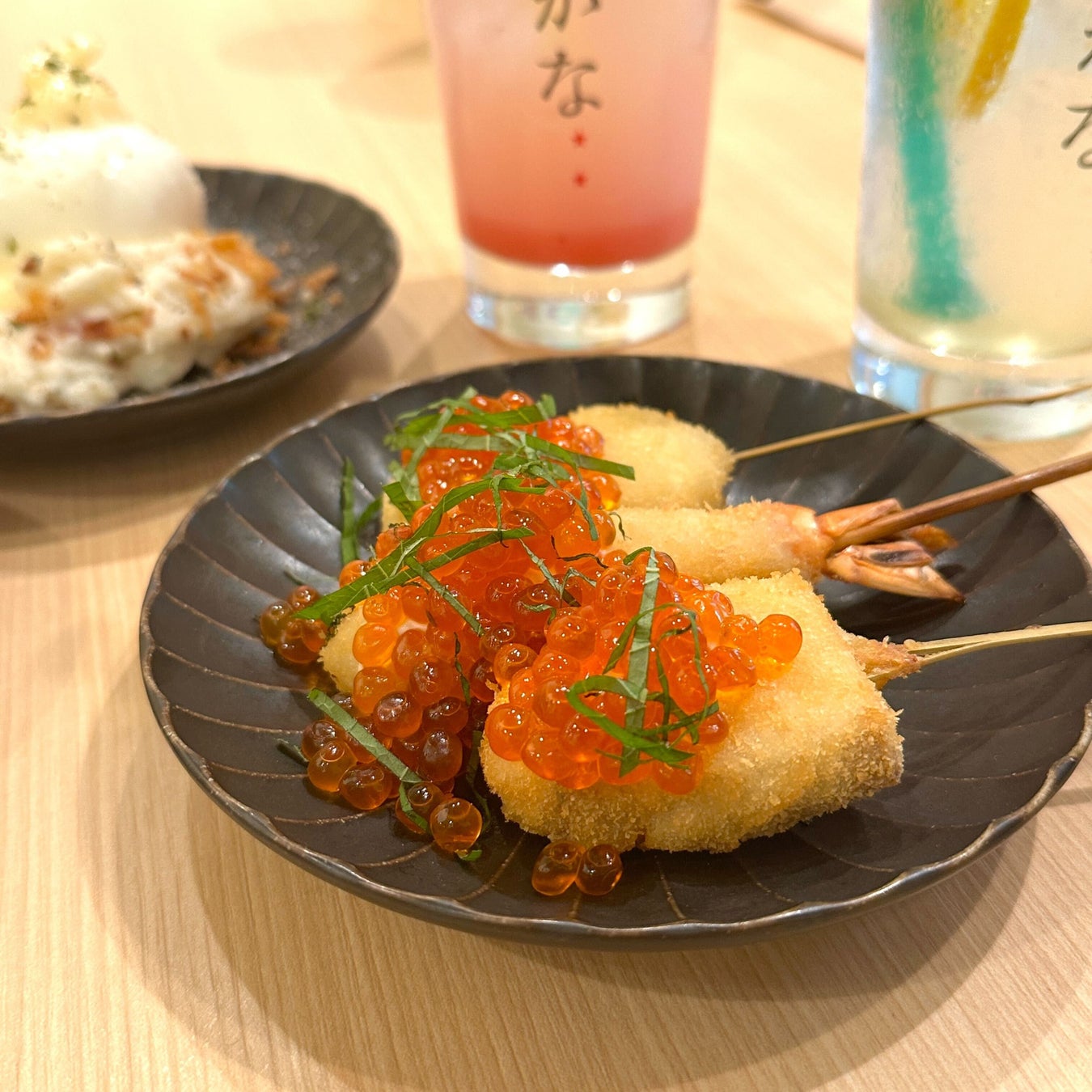ぷちぷちいくらとサクもち串かつのコラボレーションをお楽しみください。