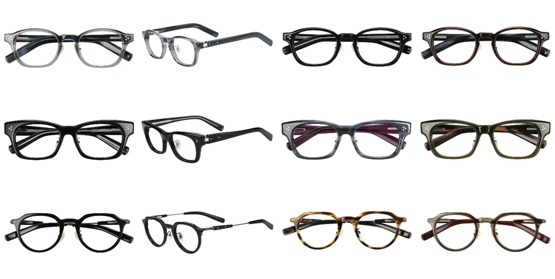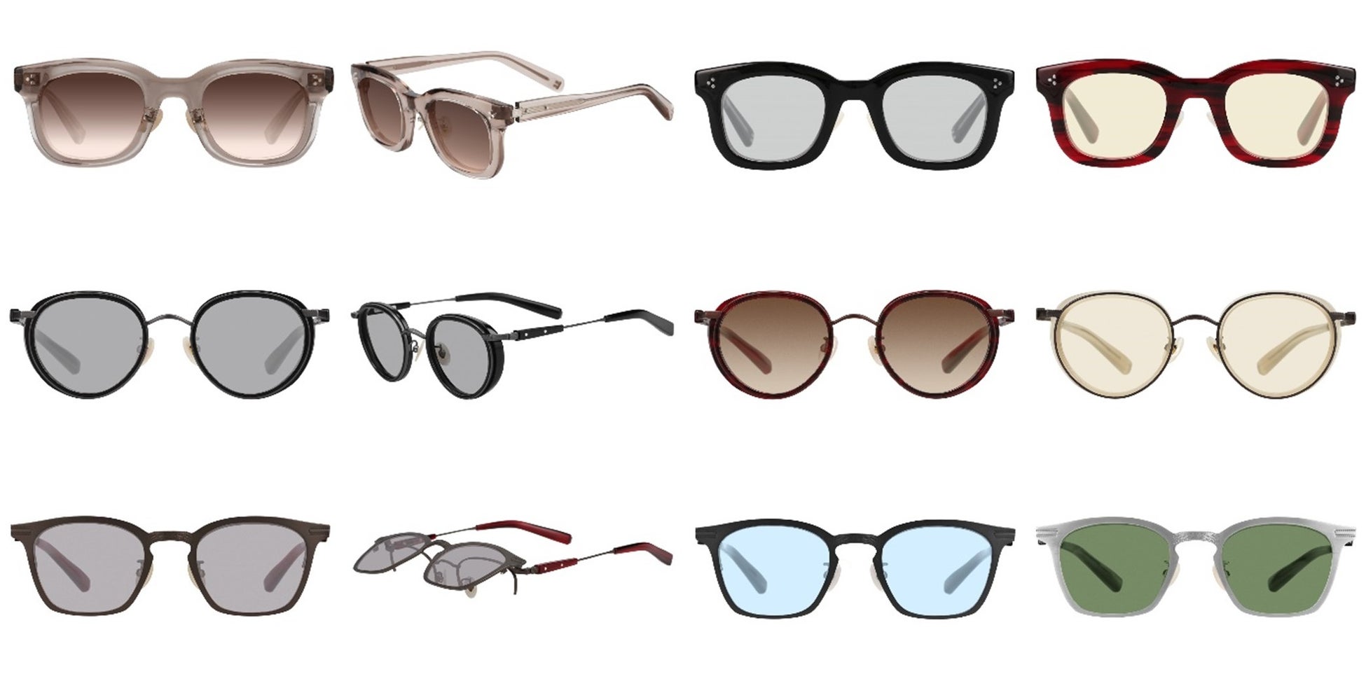 種類・価格|メガネ15型 各3⾊ 全45種 ¥14,400〜¥22,200(セットレンズ代込)、サングラス3型 各3⾊ 全9種 ¥22,200 ※サングラスは+¥3,300〜で度付きレンズへの変更が可能です。※オリジナルケース・メガネ拭き付き