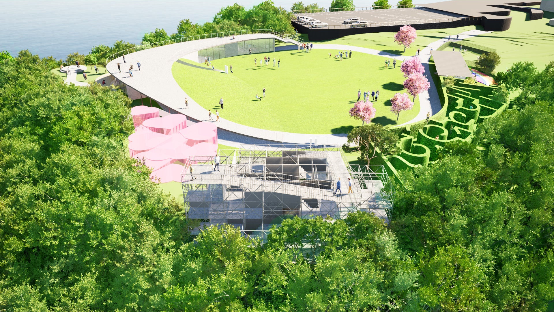 設置施設: 立体迷路、ドッグラン、カフェなど