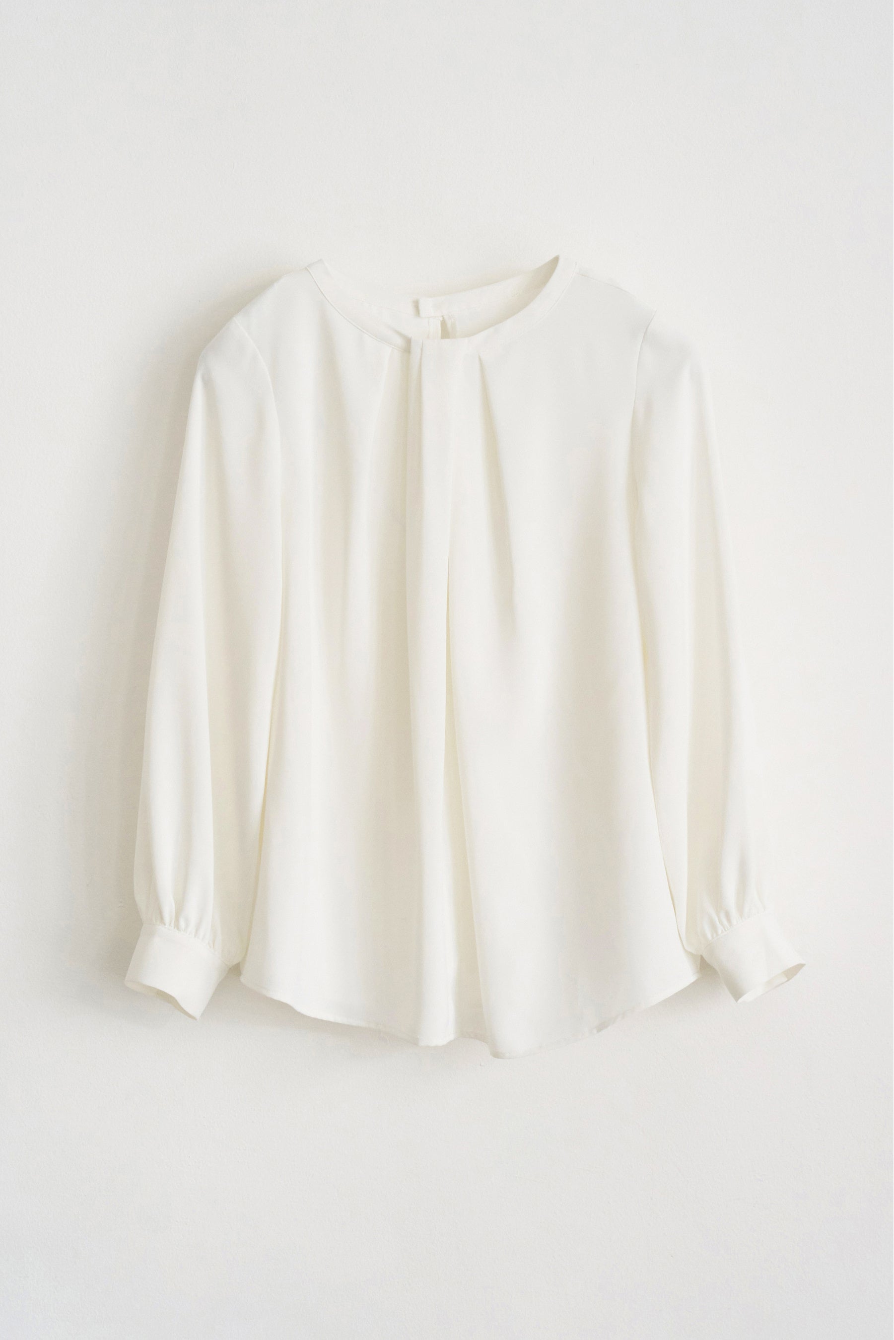 欲求のおもむくままに、気兼ねなく着用できる自由さがあり、きちんと清楚に見られる白ブラウスです。