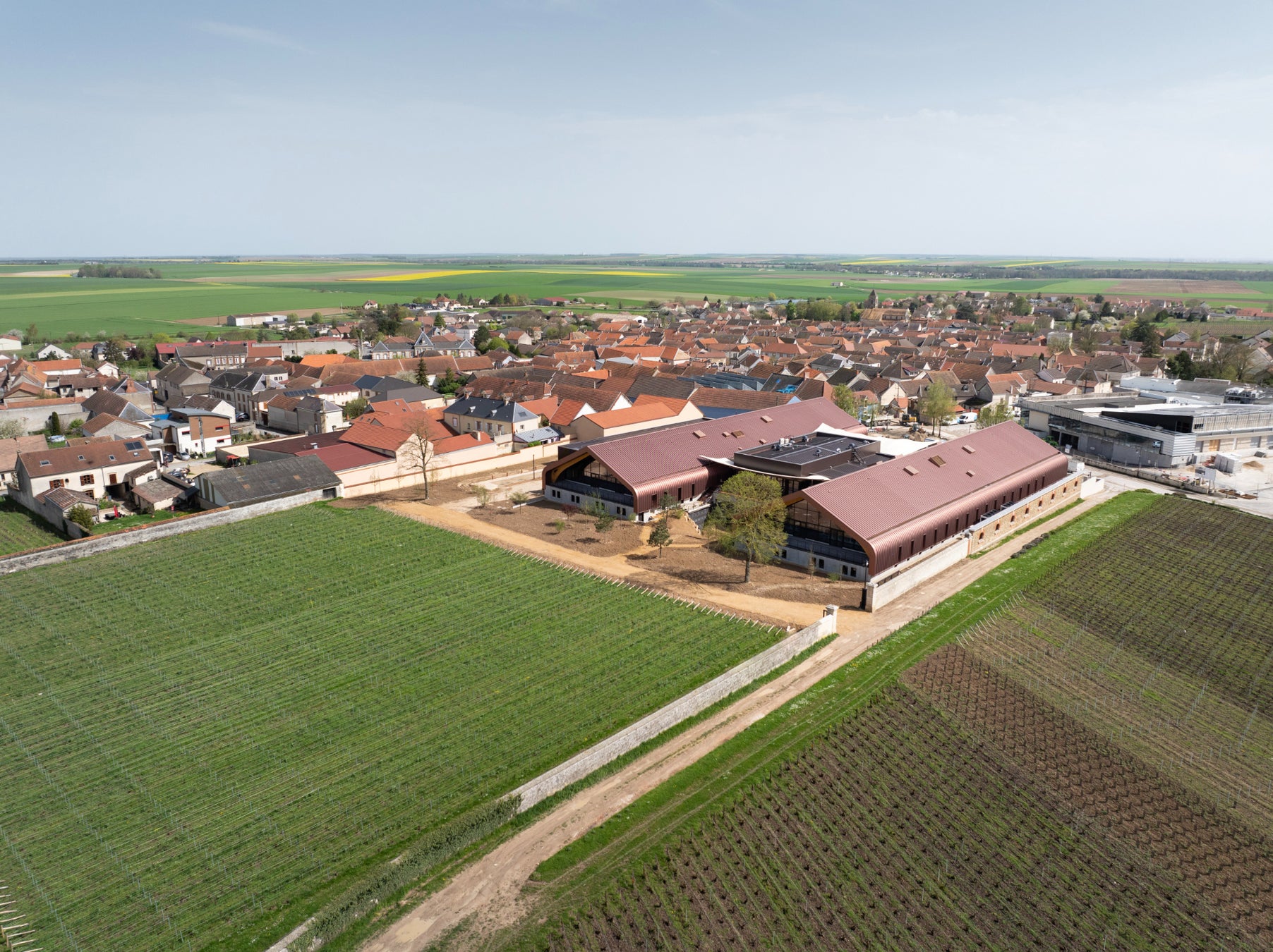 レイアウトには、既存の施設の一部を建材として再利用。コンクリートにメゾンの遺産の一部を組み合わせるという革新的なアイデアにより、都市的な面と牧歌的な面を併せ持つワイン生産地域らしい精神を体現させました。視界が開けるように設計されたテラスエリアは、シャンパーニュ造りにおける新たなインスピレーションを与える空間となっています。石組みの壁と再整備された庭との調和により、建物はブドウ畑とエレガントに融合しています。施設内のあらゆる場所で、見事なパノラマの眺望と自然採光を最大限に活かすことが特に考慮されています。