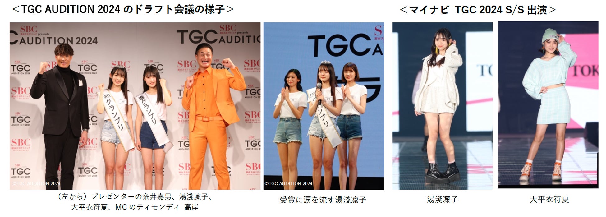 前回の「TGC AUDITION」では、大手芸能プロダクション5社が参画し「ドラフト会議」を実施。約6,000名の応募の中から10名が大手芸能プロダクションとの契約交渉権を獲得し、各事務所から指名を受けたファイナリスト5名の中から、グランプリに当時15歳の湯淺凜子、準グランプリに当時13歳の大平衣符夏(いふか)が選ばれ、2024年3月2日(土)に開催された「第38回 マイナビ 東京ガールズコレクション 2024 SPRING/SUMMER」のランウェイに登場し、華々しいデビューを飾りました。