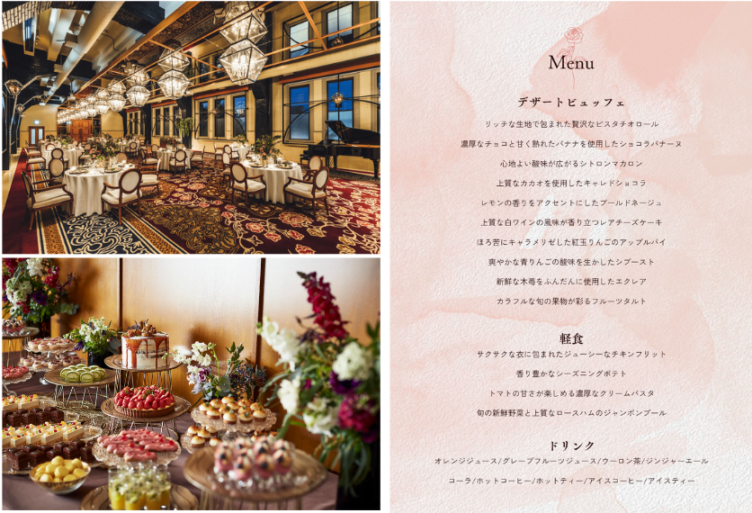 普段は披露宴でしか食べられないデザートや、旬の食材を盛り込んだメニューまで1日限定となっています。特別なスペシャリテが彩る優雅な時間を、ご家族やご友人、大切な方と一緒にお楽しみください。