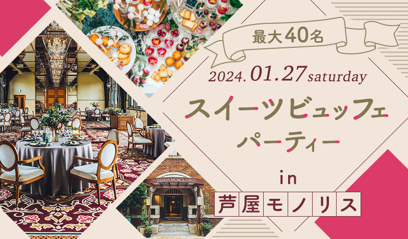 【予約必須】結婚式場で楽しむ贅沢なスイーツビュッフェ企画を1/27(土)に芦屋モノリスで開催!