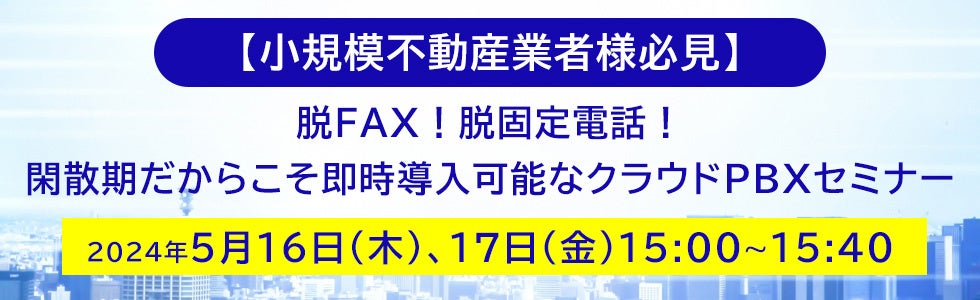 脱FAX!脱固定電話!閑散期だからこそ即時導入可能なクラウドPBXセミナー 2024年5月16日(木)、17日(金)15:00∼15:40オンライン配信