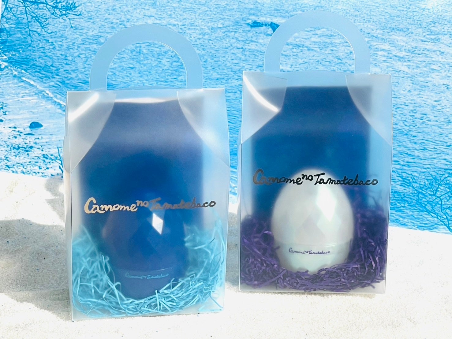 かもめの玉手箱は、三陸の銘菓「かもめの玉子」から生まれた新しいギフトプロジェクトです。日本の童話「浦島太郎」をアレンジした文学と共に、音楽・映像・プロダクトが連動する体験型コンテンツとして展開。象徴となる宝石のようなダイヤモンドカットを施したケースは、サファイア(蒼玉)をイメージした輝きと卵形のデザインが特徴で、大船渡の技術により一つひとつ丁寧に作られています。お菓子だけでなく、大切な想いや思い出をそっと包み込む、新しい贈り物のかたちを提案します。