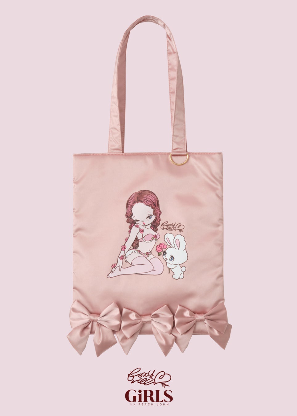 foxy illustrationsが描き下ろしたオリジナルのBunnyとGirlがプリントされたトートバッグ。