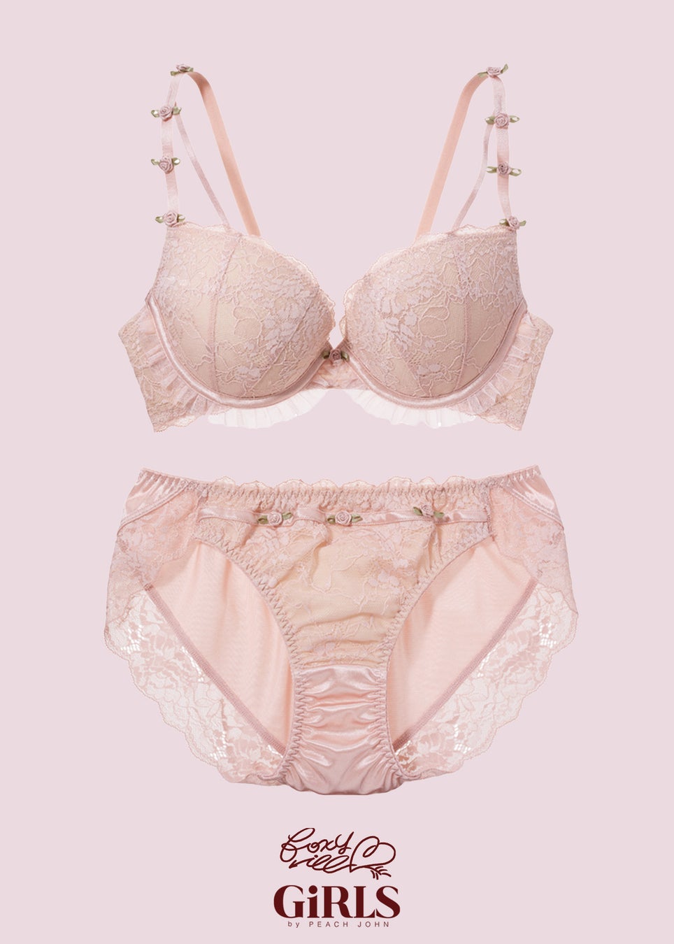 ローズモチーフやチュールをふんだんに使用した、ガーリーなデザインのワイヤー入りブラセット。