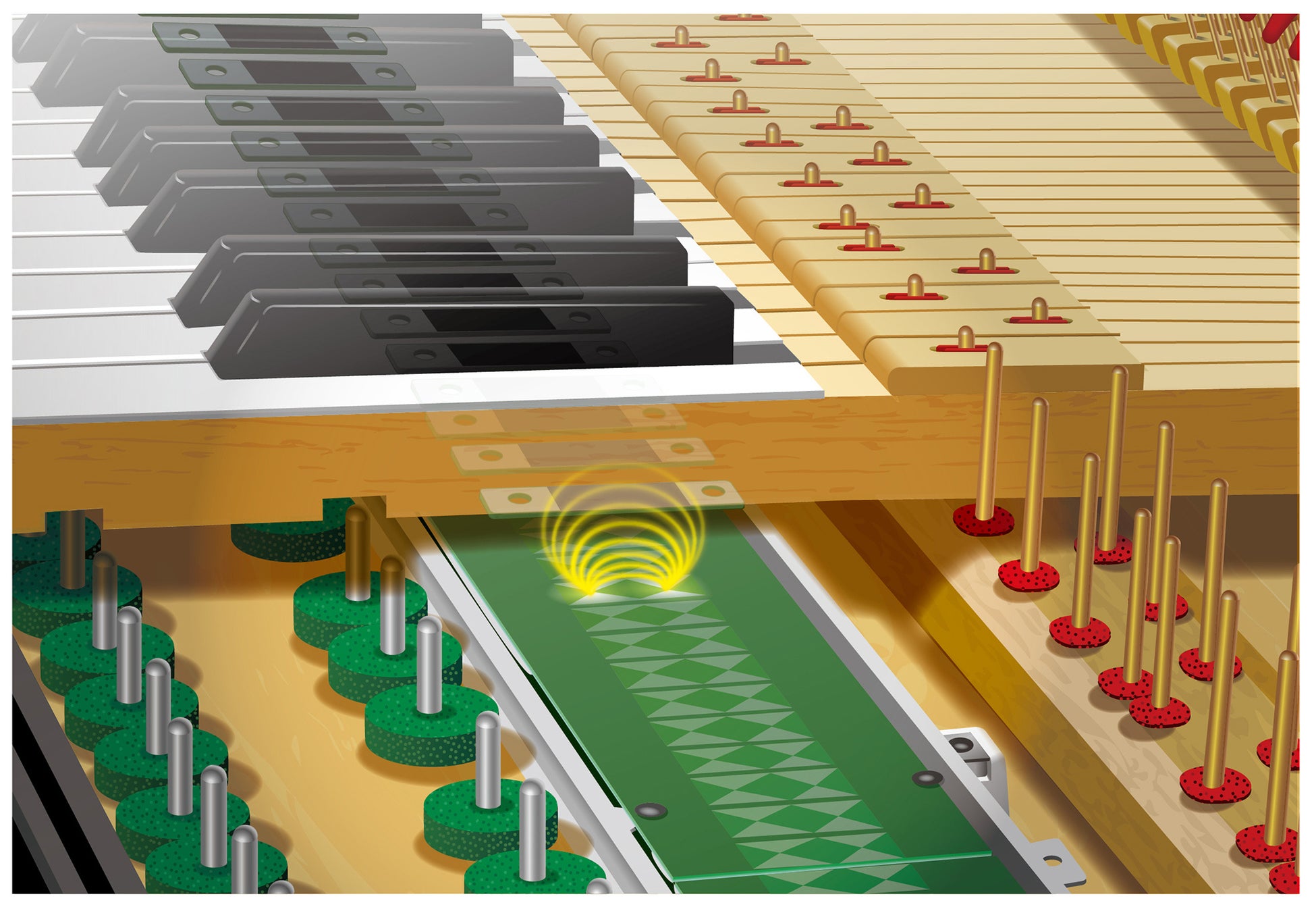 - 響板を振動させる専用のトランスデューサーを搭載し、豊かな響きのまま音量調節が可能