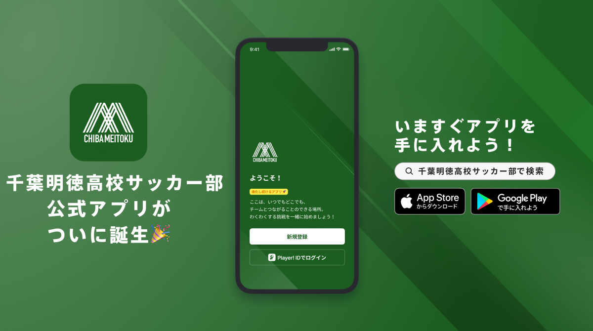 AppStoreもしくはGooglePlayで「千葉明徳高校サッカー部」と検索していただくか、下記をクリックすることでアプリ取得画面にリンクします。どうぞお楽しみ下さい。