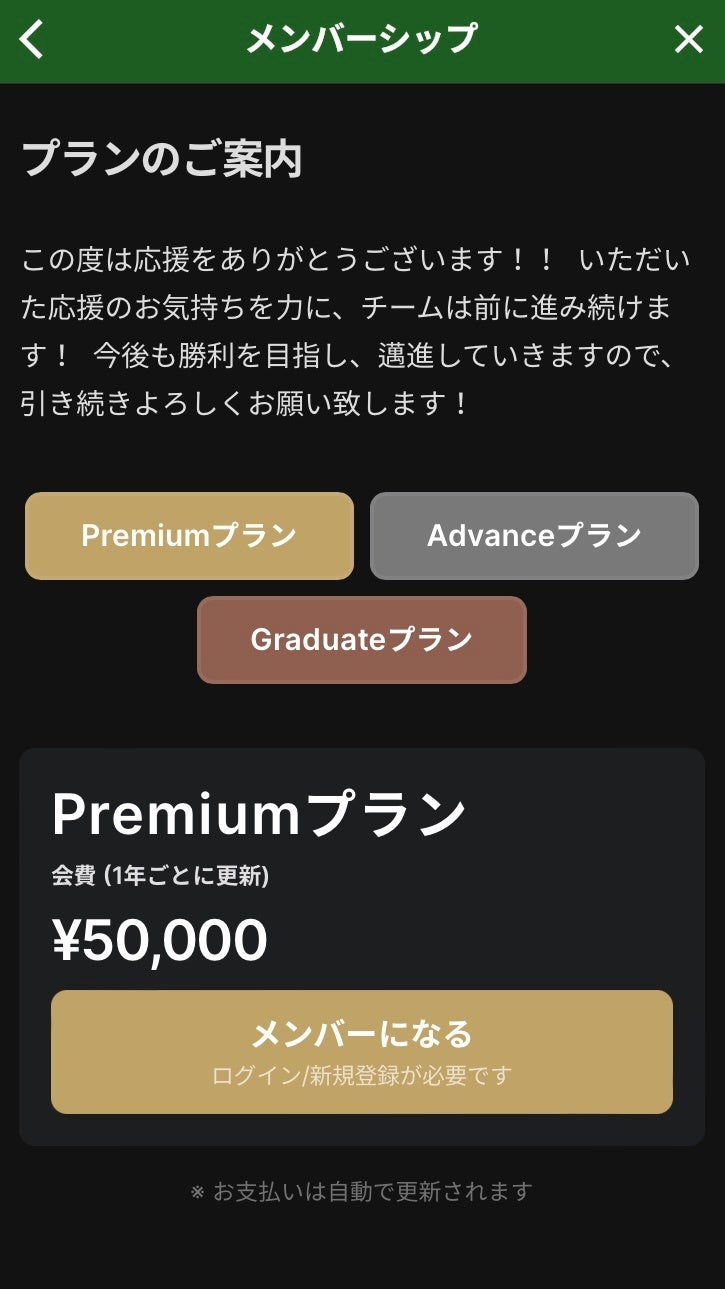 限定グッズが受け取れる有料会員、500円から可能なイベント毎のギフティング、企業との繋がりをつくるアプリスポンサーなど、アプリを主軸に多様な形で応援することができます。チームはアナログだったOBOG会やファンクラブ管理などの決済、顧客情報管理を自動化することが可能です。