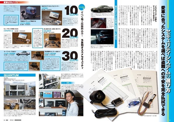特集のメインは、車両盗難や車両ねらいを撃退するために効果的なカーセキュリティシステムの紹介。どんな手口に対して有効なのか? システム構成はどうなっているのか? どうやって装着するのか? などを初心者にも分かりやすく解説し、今購入できる各メーカーのカーセキュリティシステムを、それぞれの特徴とともに見せる。