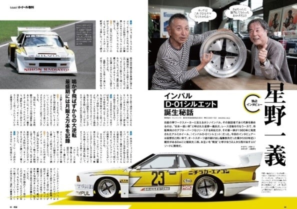 さらに、誰もが知る往年の名作を当時の広告とともに振り返る懐かしのホイールBEST20や、“日本一速い男”星野一義氏への独占インタビューで明かされた1980年代の超人気ホイール、インパルD-01シルエット誕生秘話なども展開。ホイールにまつわる情報を満載した読み応え満点な内容となっている。
