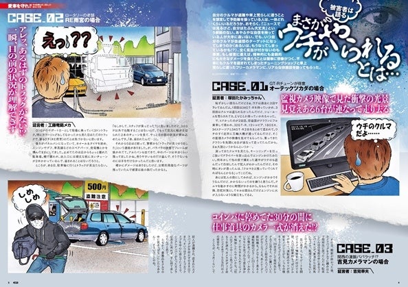 また、不幸にも被害に遭ってしまった業界関係者の体験談や、日本における車両盗難&車上ねらいに関する各種統計データ、自動車メーカー各社が力を入れている純正セキュリティのシステム&機能紹介、車両保険の本当のところなど、周辺情報も充実させている。