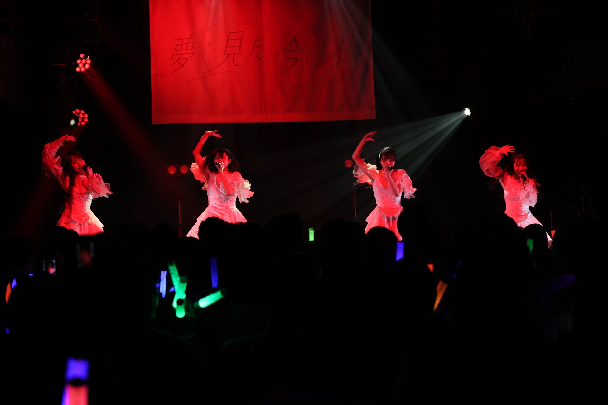メンバーごとに細かなアレンジがなされつつも白一色で統一された衣装は、風をいっぱいに受けて広がる帆のようで、これから何色にも染まっていく気概を見せた。「遠キョリ。だって本気」で客席にキュートなオーラを振りまき、疾走感ある「拝啓ライバル」「不屈のアイドル」では、ソロパートで各メンバーが強い目力とともにボーカルを響かせていく。