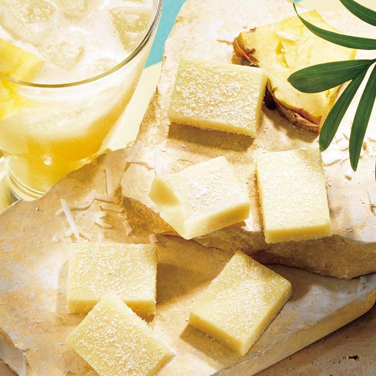 ラム酒にパイナップルジュースとココナッツミルクを合わせたカクテル「ピニャコラーダ」をイメージした生チョコレート。トロピカルな香りがふわりと広がり、ホワイトチョコレートの上品な甘さとラム酒の余韻にやさしく包まれます。暑い夏にふさわしい、南国を思わせる味わいをぜひお楽しみください。