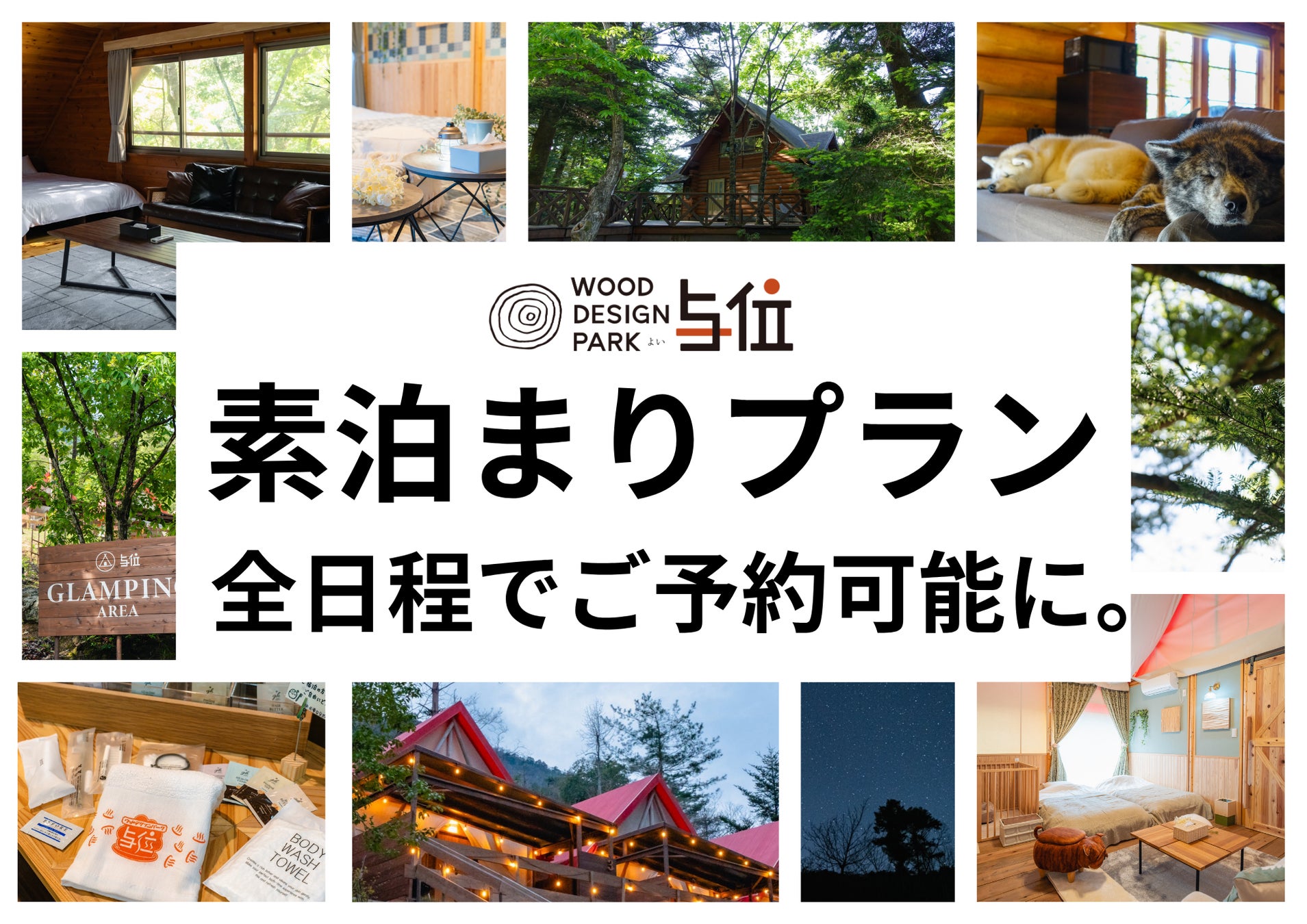 2025年7月より全日程でウッドデザインパーク与位の「素泊まりプラン」が、ご利用いただけるようになりました。