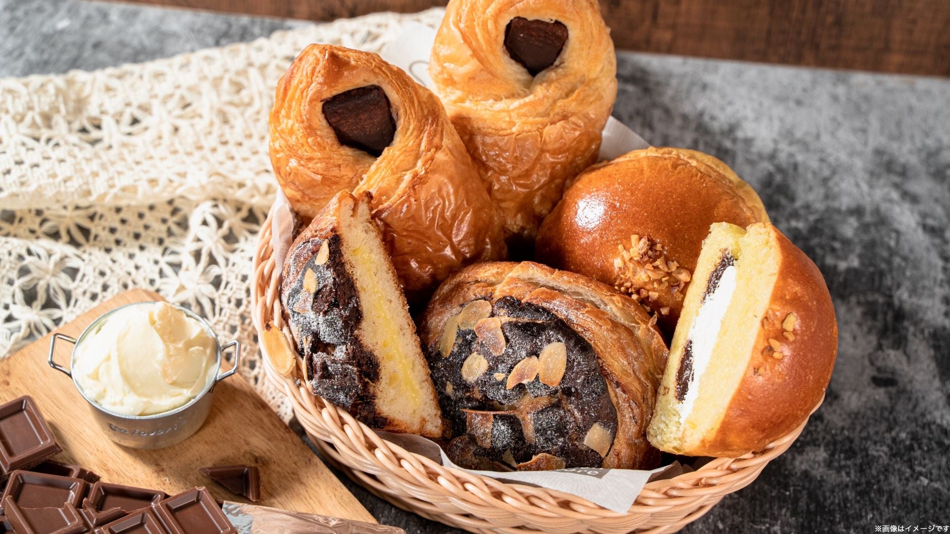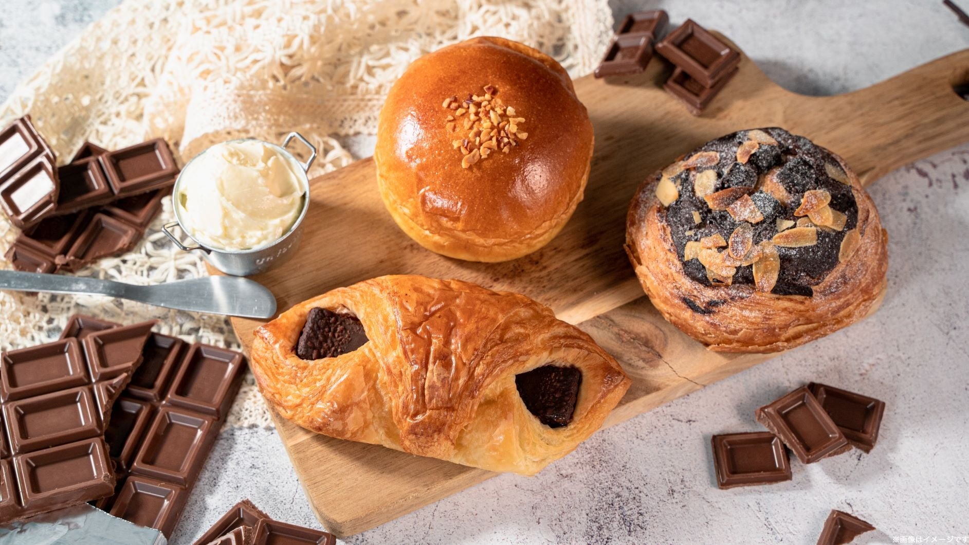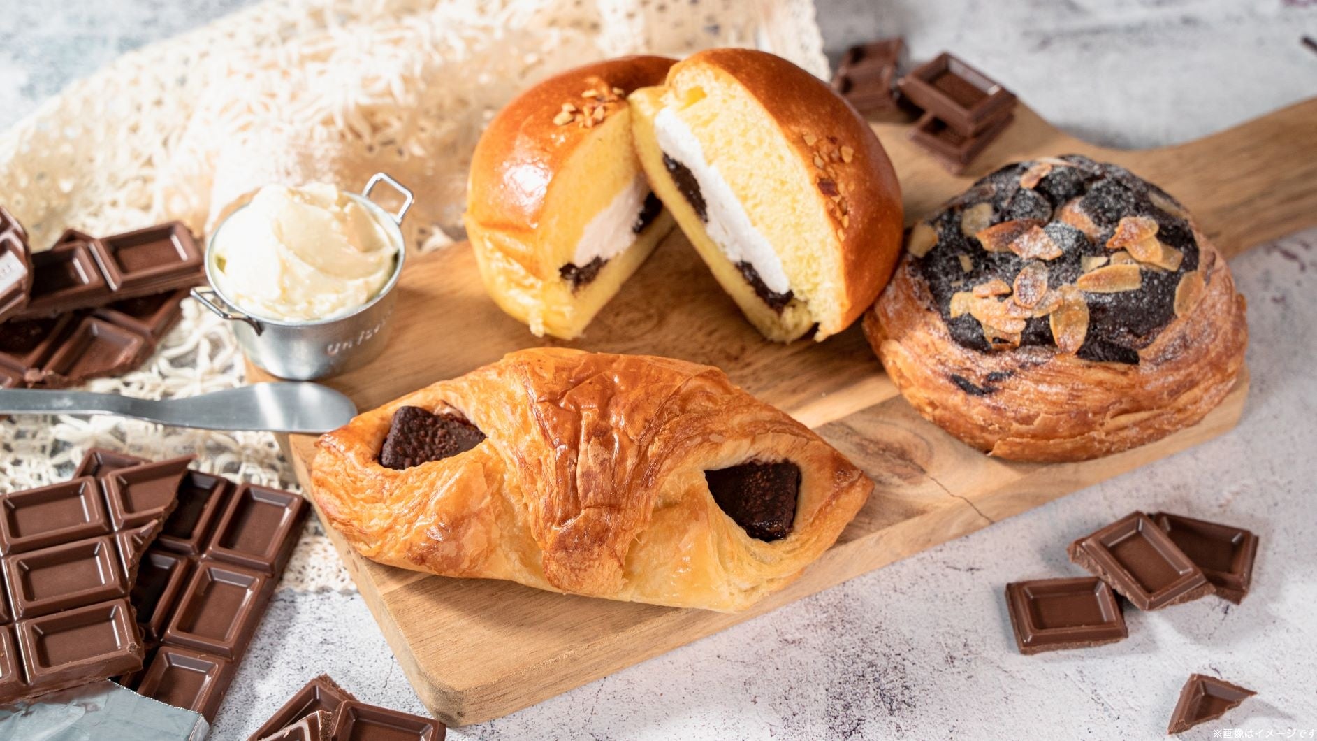 このたび、菓子パン年間販売金額No.1の(2021年3月~2022年2月)「チョコ好きのためのチョコクロワッサン」を「発酵バター入り生地のチョコクロワッサン」としてリニューアル発売し、新たに「発酵バター入りホイップの生チョコブリオッシュ」と「発酵バター入りクリームの焼チョコデニッシュ」を発売いたします。