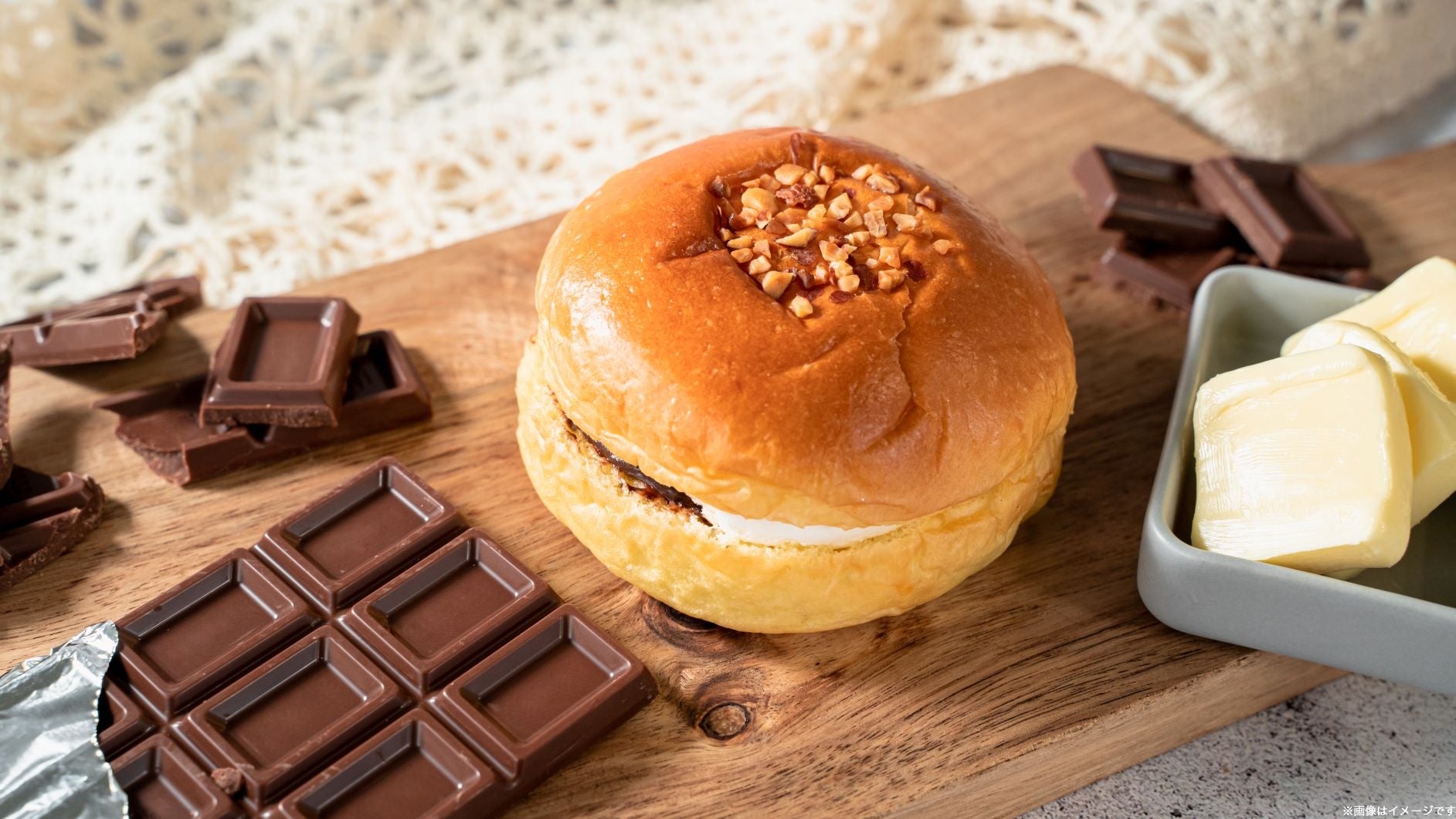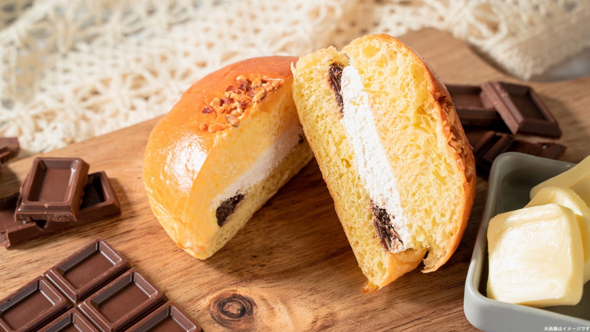 「チョコバタぱん」は、パンで人気の具材の「チョコ」とトレンドの「発酵バター」のとけあうおいしさを楽しんでいただける、パンの新シリーズです。パン生地やクリームなどに発酵バターを使用し、具材にチョコを使用しました。