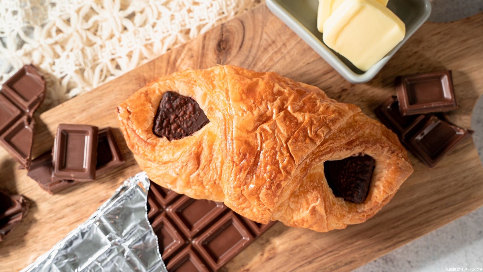【内容】クロワッサン生地に使用する発酵バターを2倍に増量し、風味豊かに仕上げました。チョコについては、製法の見直しにより、チョコ感をアップした味わいに改良しました。