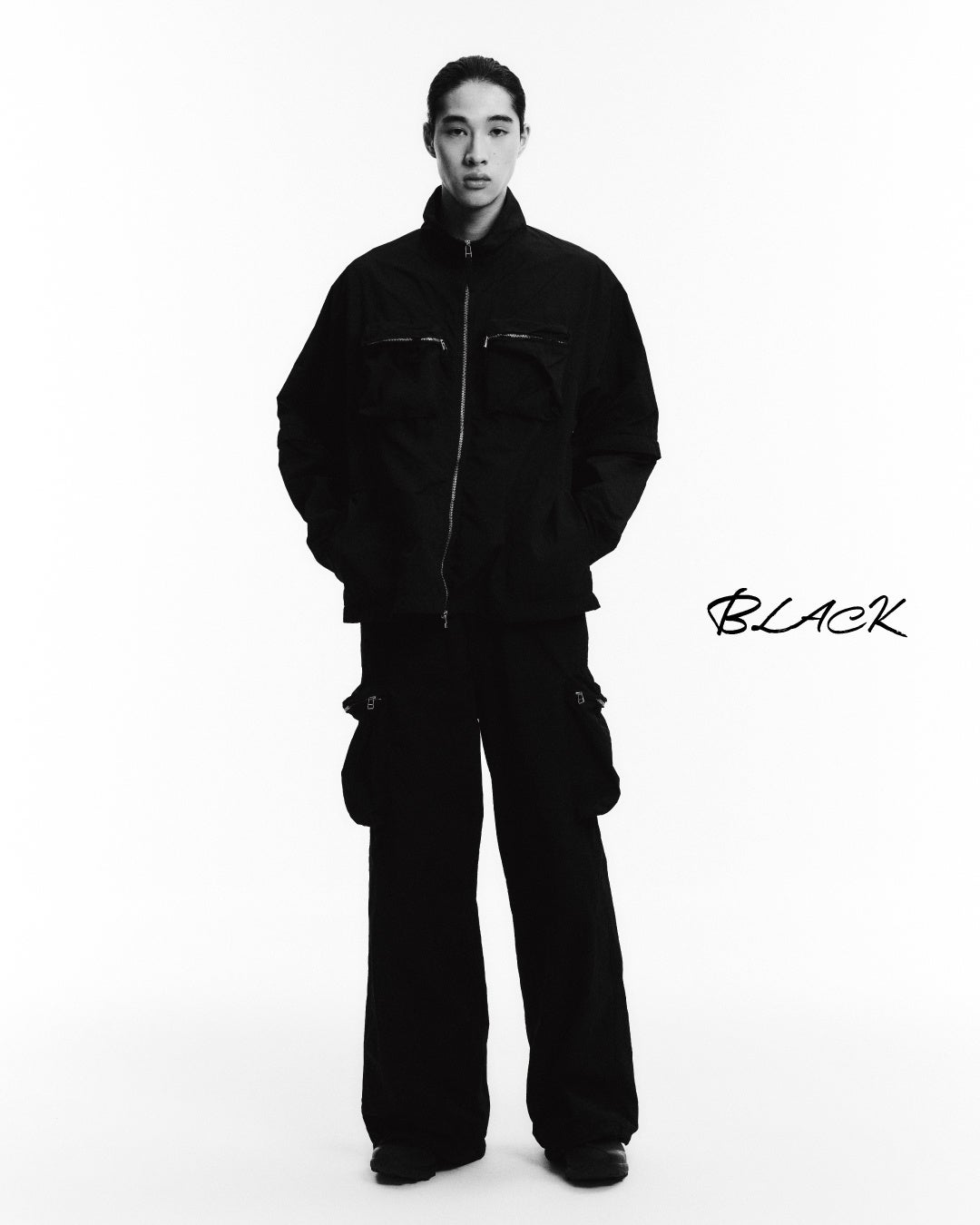 ブルゾンのフロントやパンツのサイドに配置した立体感のあるポケットは、セットアップで着用した時のバランスや収納力にもこだわったタウンユースに最適なディティールとなっています。