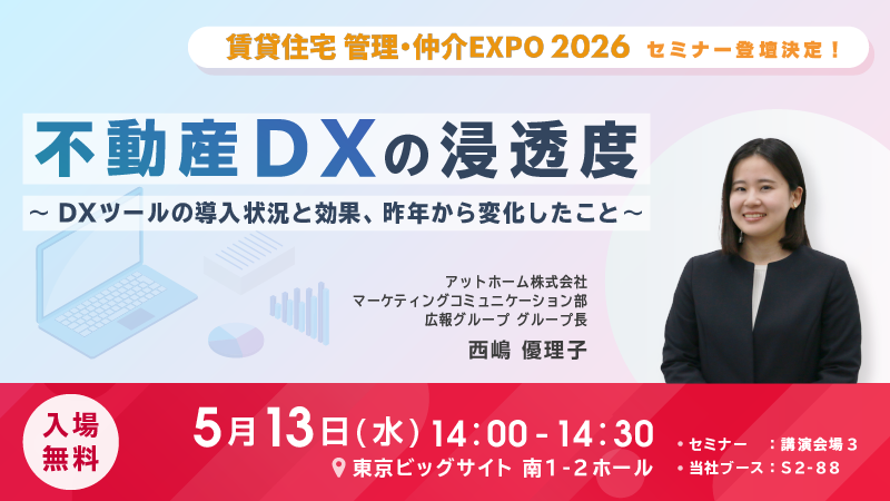 アットホーム 広報グループ西嶋 優理子が「賃貸住宅 管理・仲介EXPO 2026」のセミナーに登壇いたします