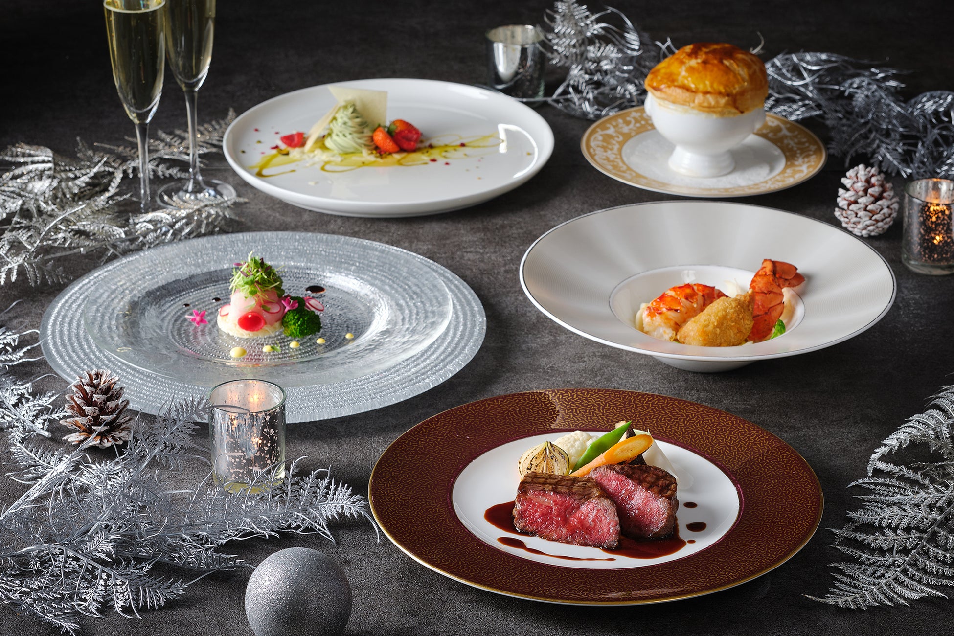 シャンパンやドン・ペリニヨンなどの乾杯から始まり、キャビアやオマール海老、黒毛和牛などの高級食材を活かしたフェスティブシーズンのお祝いにふさわしい贅沢で華やかな料理をお届けいたします。