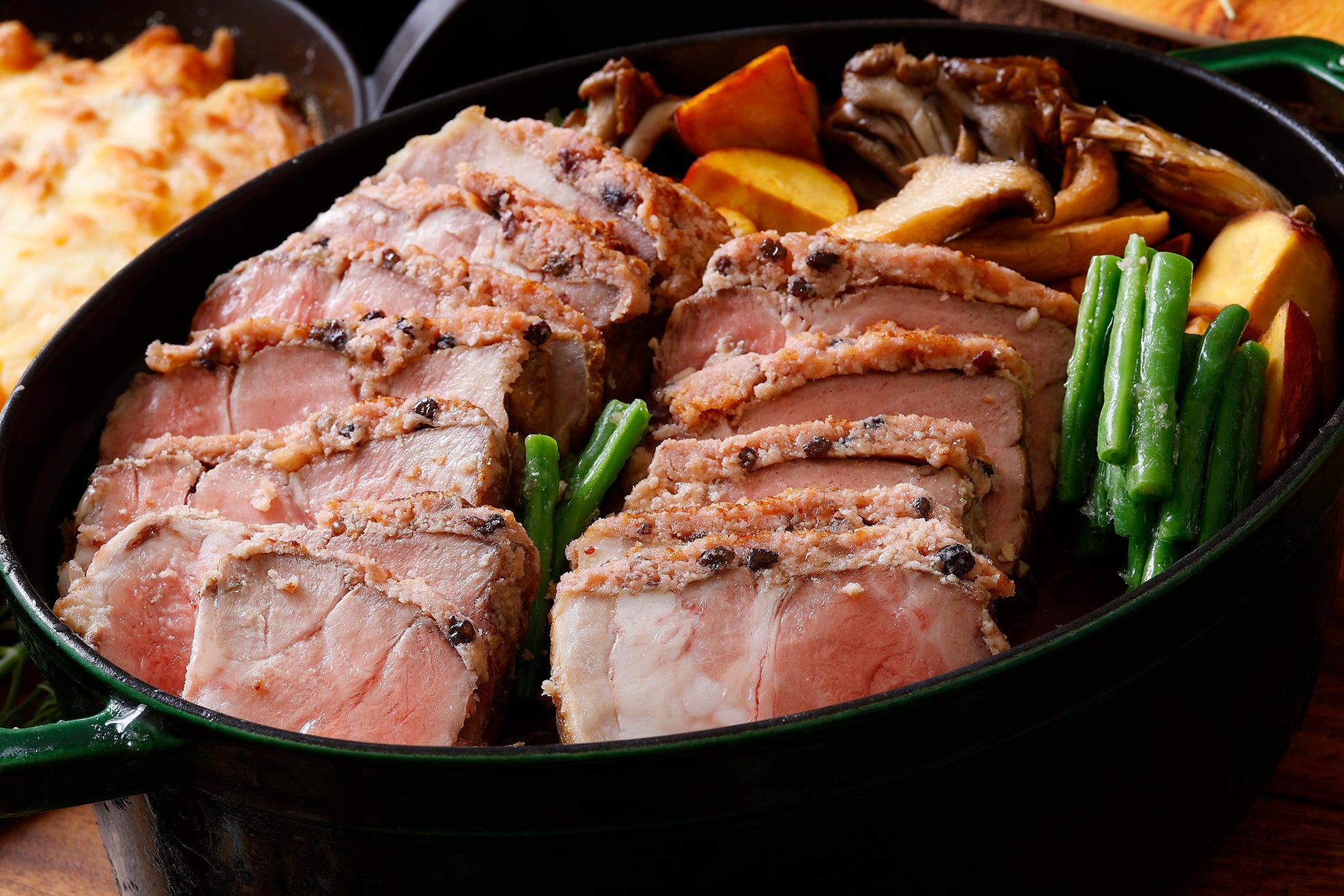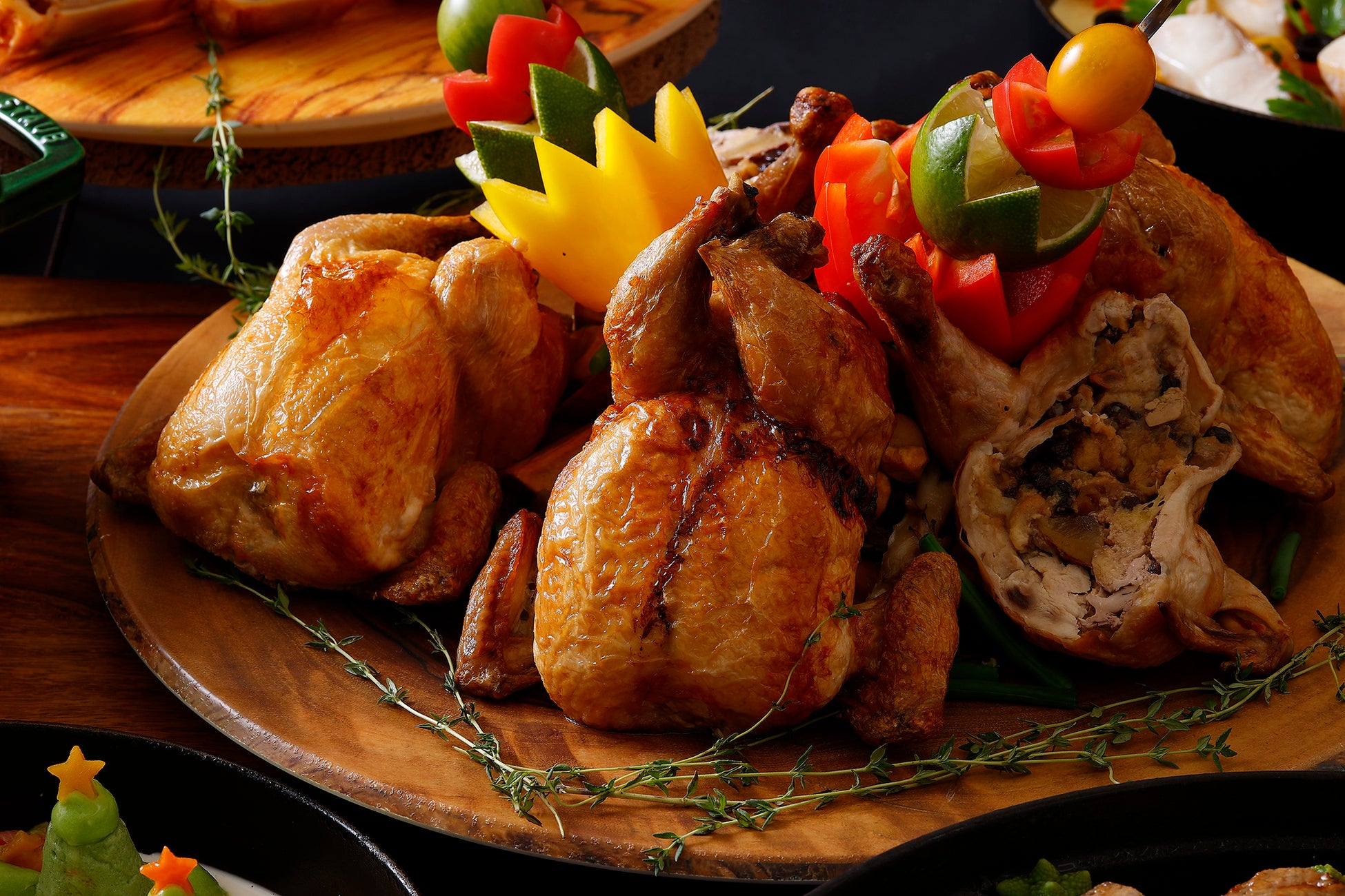 フェスティブシーズンを華やかに演出する、チーズとハーブをふんだんに使用したパーティー料理を揃えたクリスマスランチ&ディナーブッフェを開催。人気定番メニューのローストビーフや握りたてのお寿司、揚げたての天ぷらに加え、2種のローストチキンなど賑やかでワクワクするラインナップをご用意いたしました。さらに、12月20日から25日のクリスマス期間限定スペシャルメニューとして、「牛フィレ肉とフォアグラのステーキ」をお楽しみいただけます。