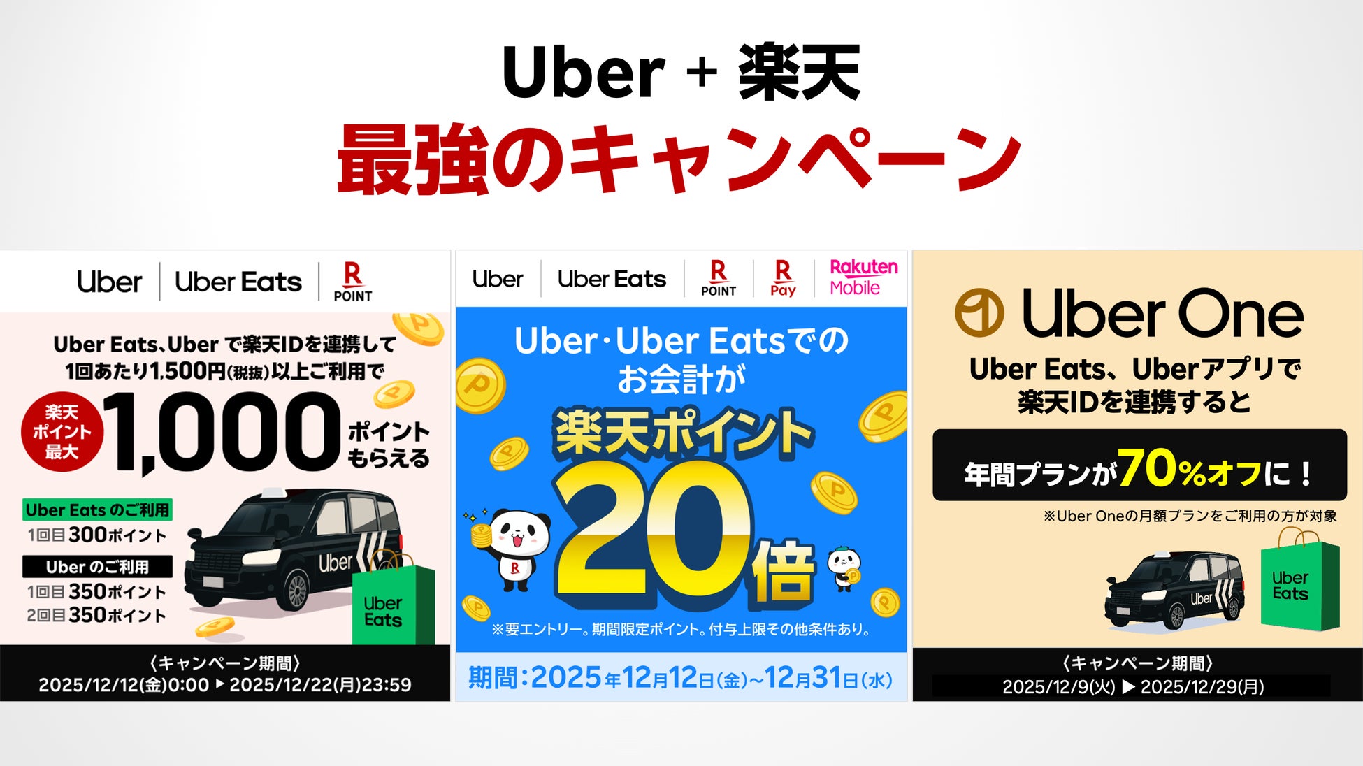 本導入を記念して、2025年12月12日(金)から12月22日(月)まで、「Uber 楽天ID連携で最大1,000ポイントプレゼント」キャンペーンを実施します。