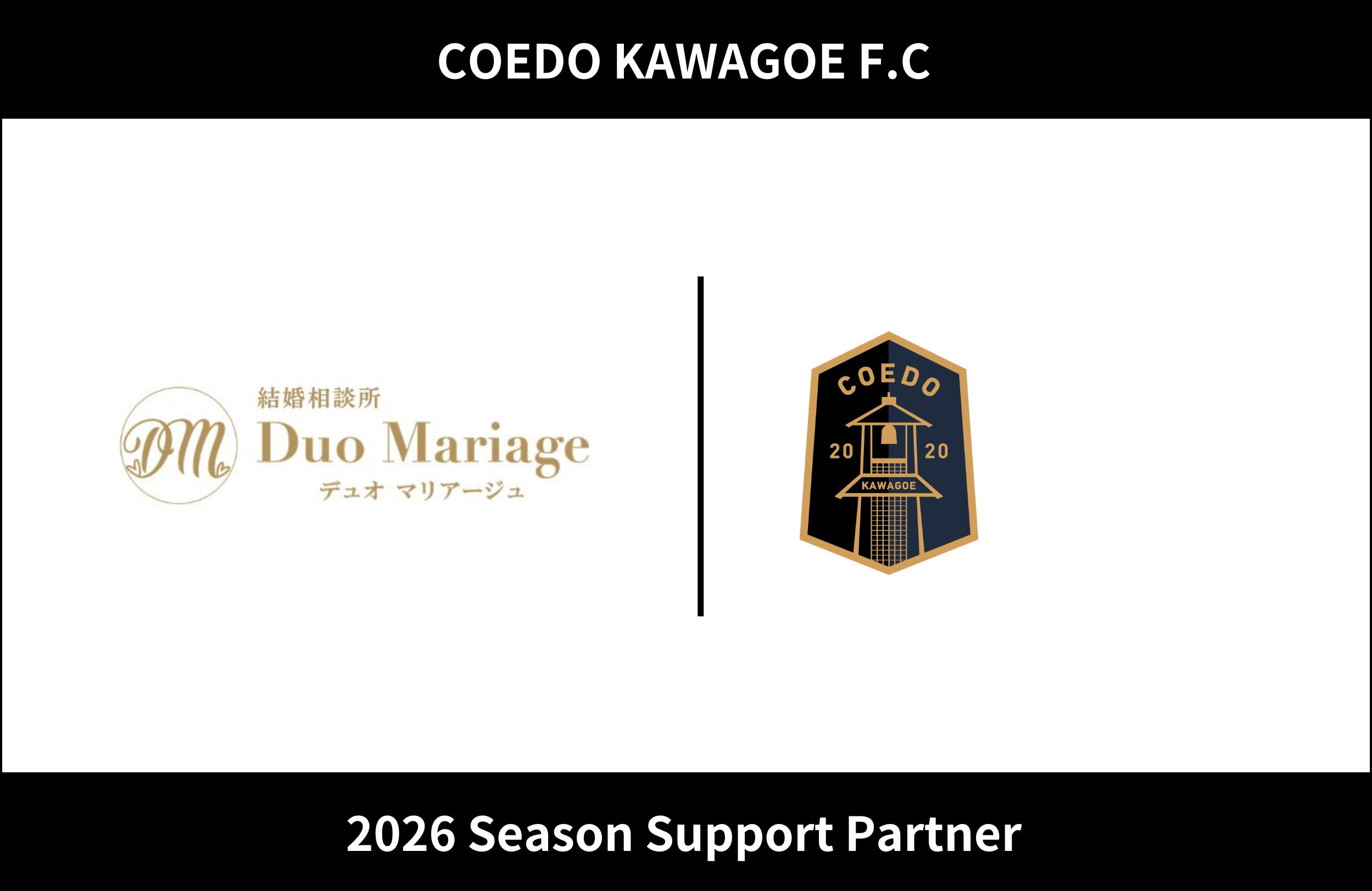 COEDO KAWAGOE F.Cを運営するCOEDO KAWAGOE F.C株式会社(埼玉県川越市、代表取締役 有田和生)は、狭山市を拠点とし、相談からお見合い、交際、ご成婚の瞬間まで、マンツーマンで親身に対応する「結婚相談所Duo Mariage」(埼玉県狭山市、代表 松岡省吾)と2026シーズンのサポートパートナー契約を締結したことを発表いたします。