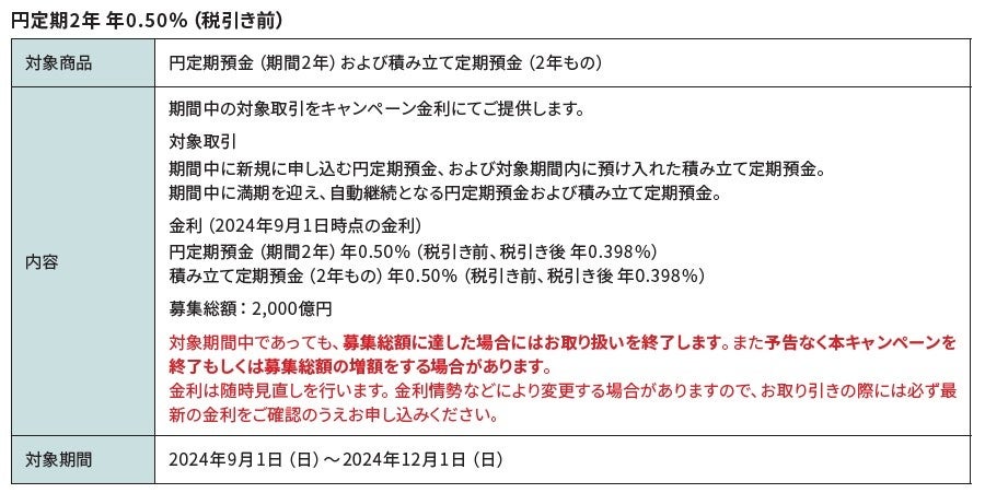 「円定期2年 年0.50%(税引き前)」など2企画実施のお知らせ